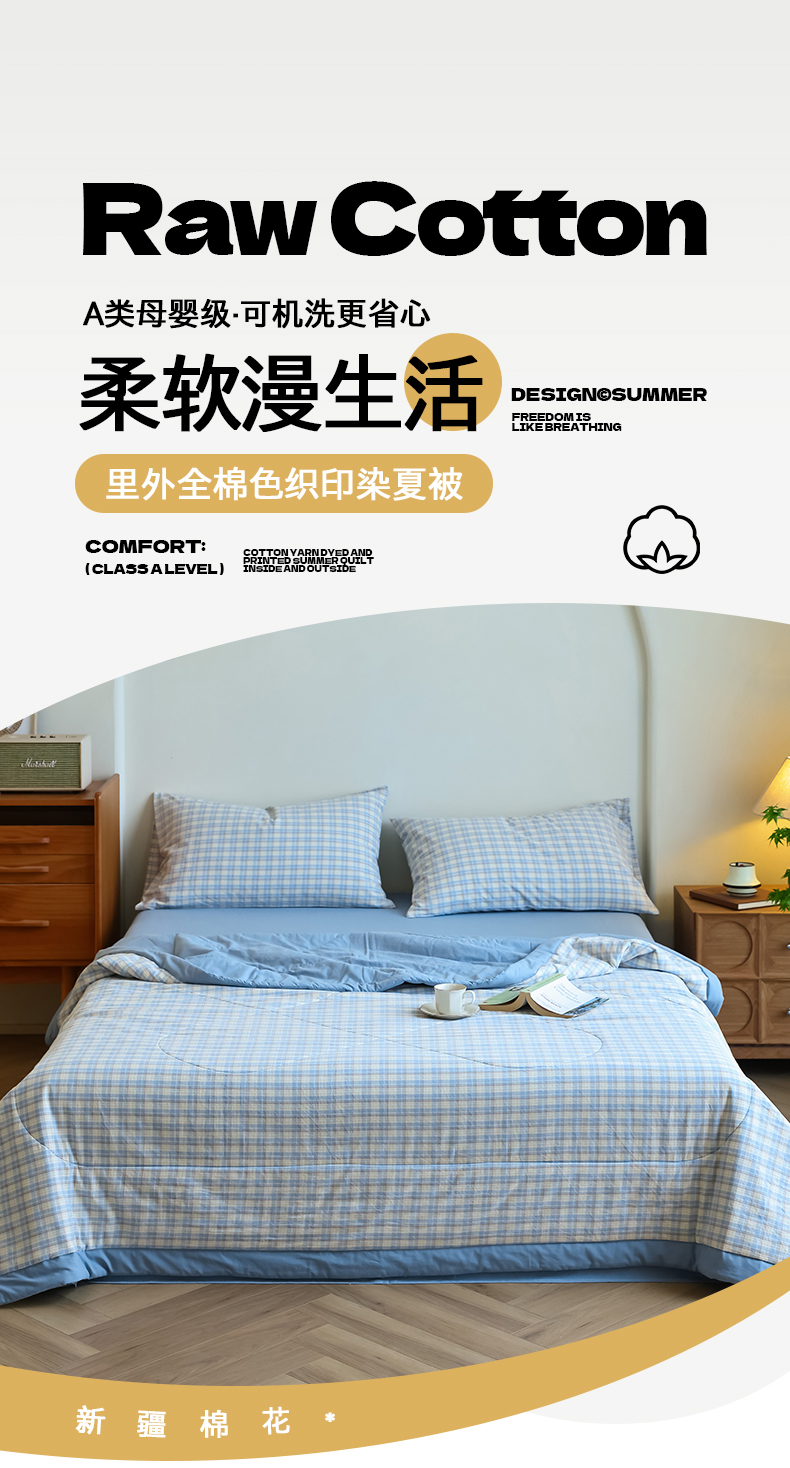 小叮当家纺仓储工厂店 2025新款A类无印风里外全棉水洗棉新疆棉花夏被夏凉被空调被 朵拉兰