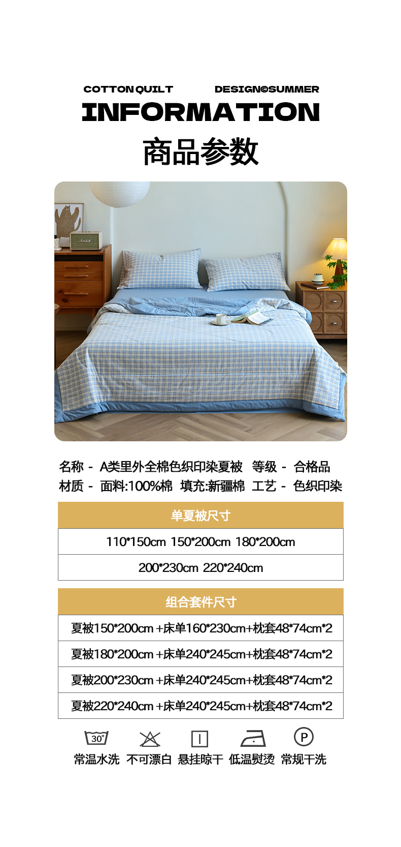 • 适用季节: 空调被/夏凉被