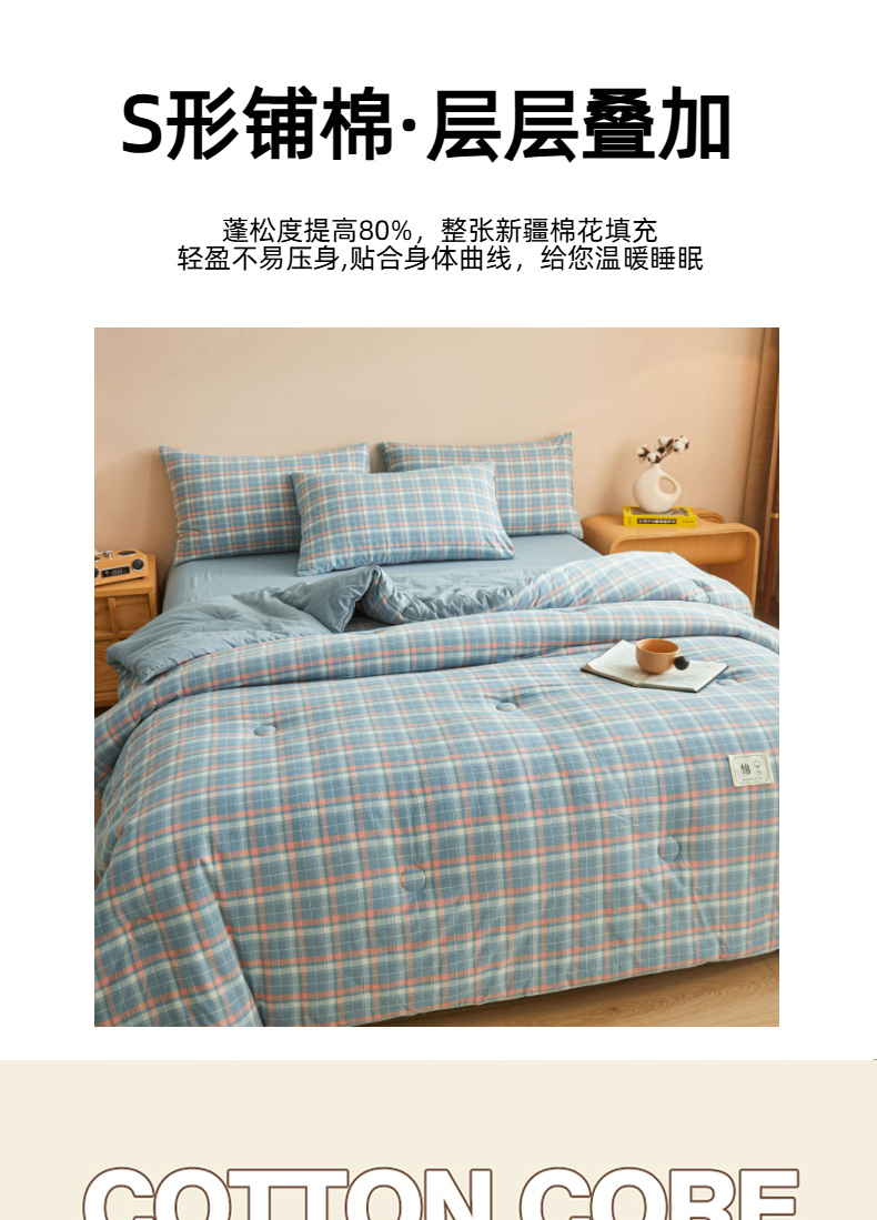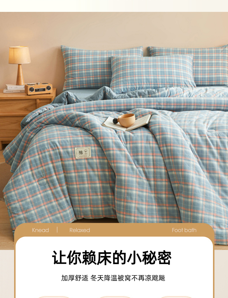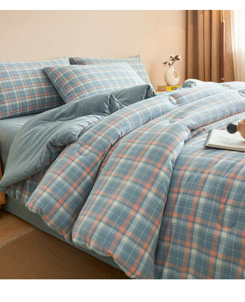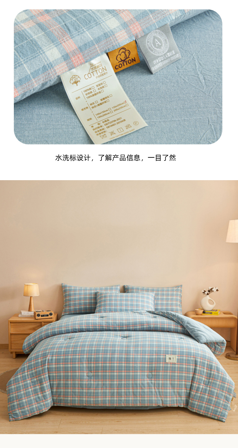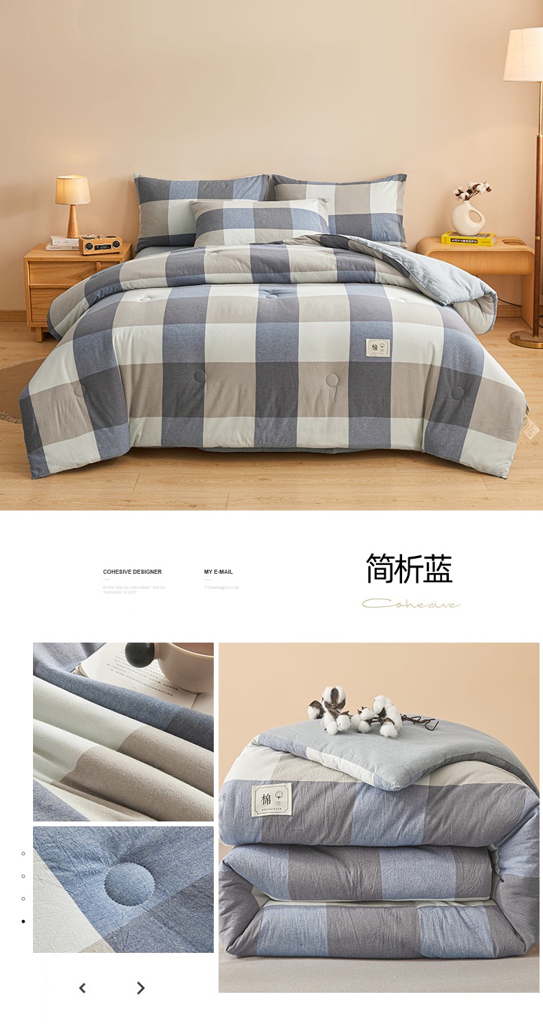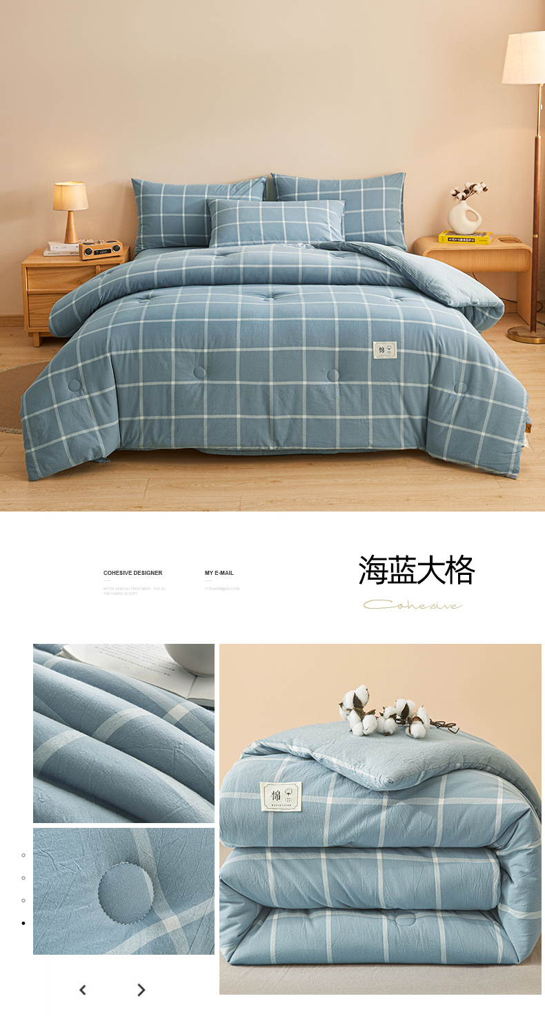 • 91家纺网 家纺一手货源 找家纺 爱屋及屋 2025新款无印风水洗棉棉花冬被被子被芯 格韵蓝