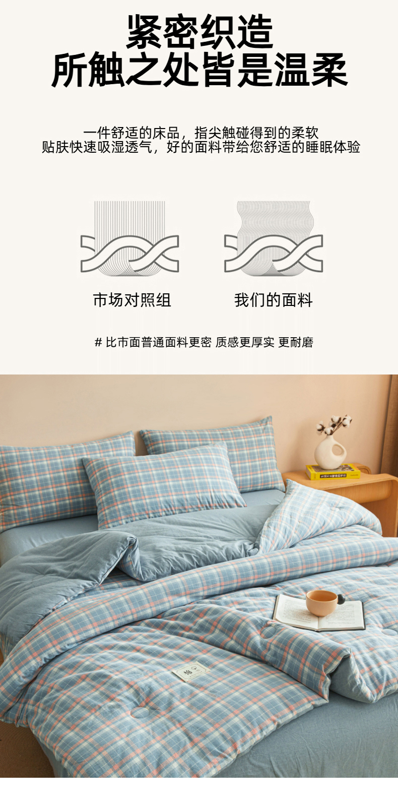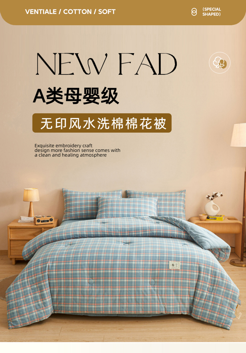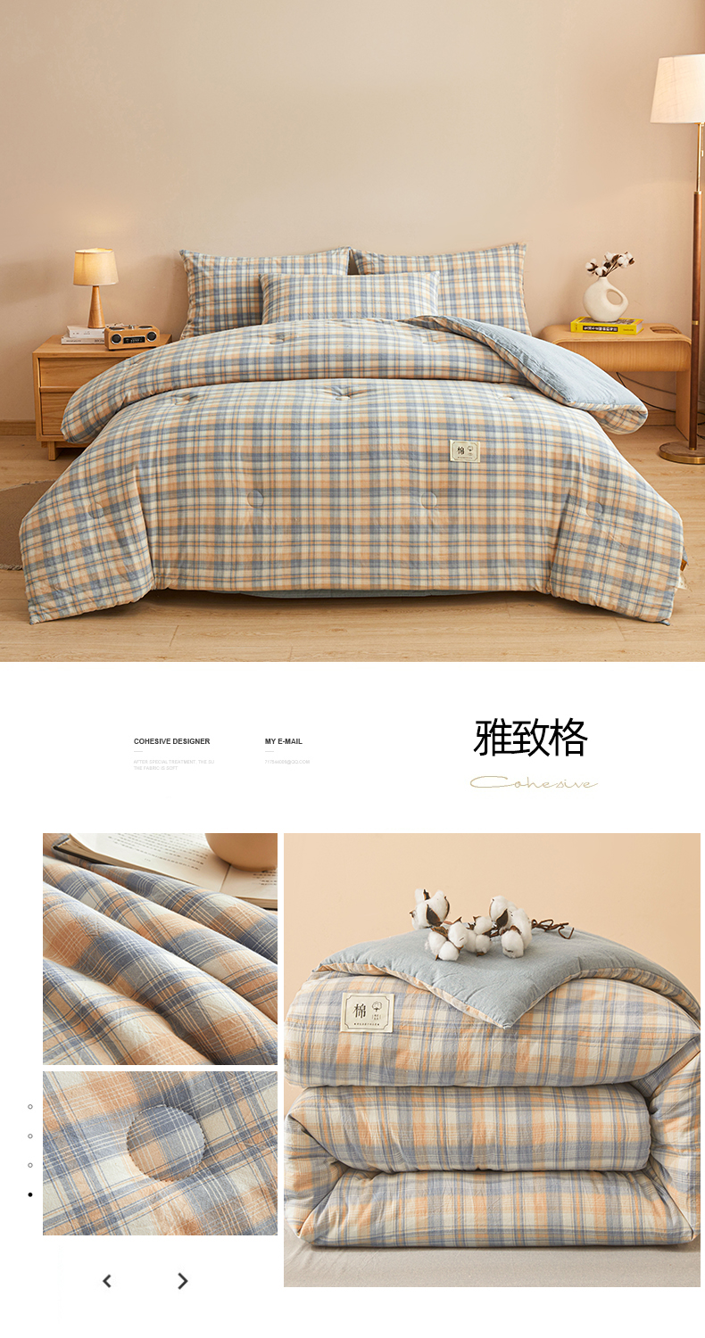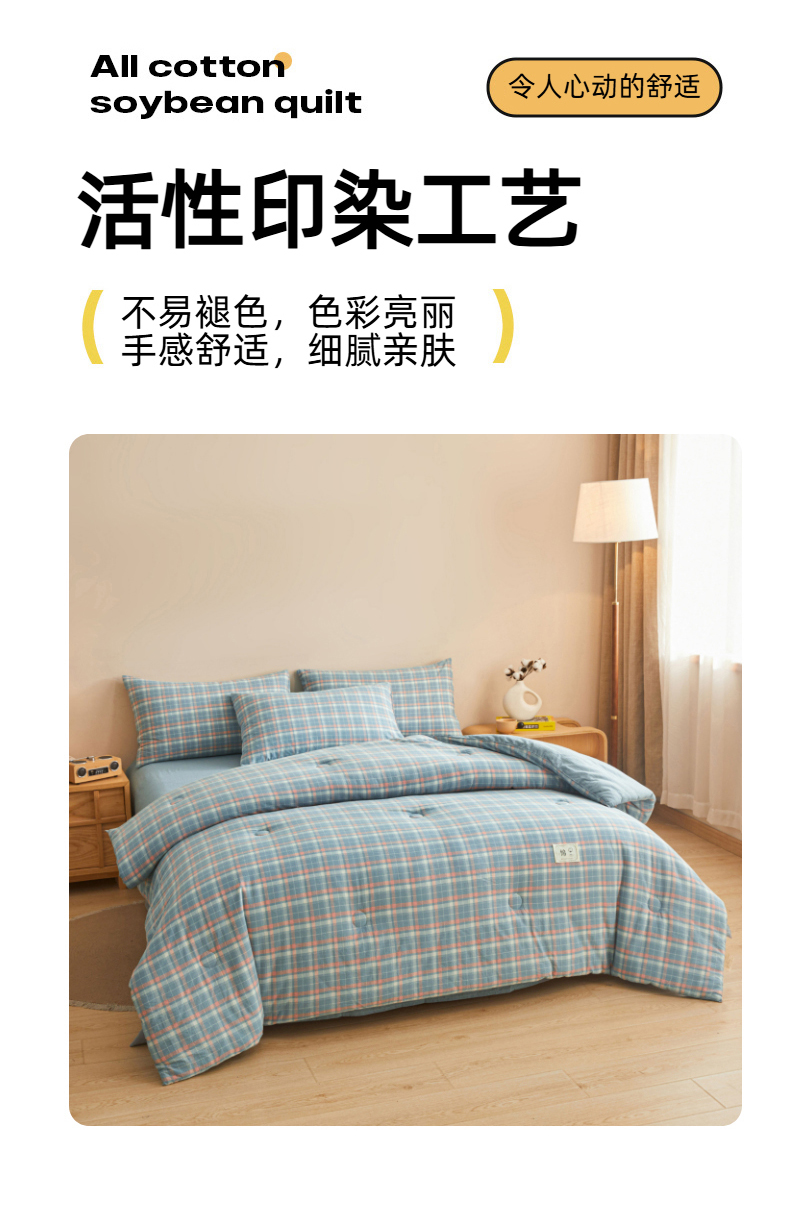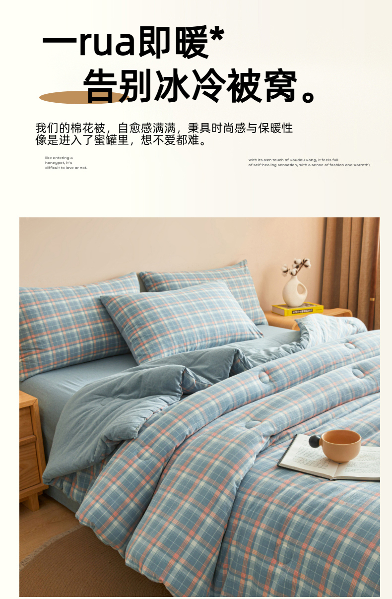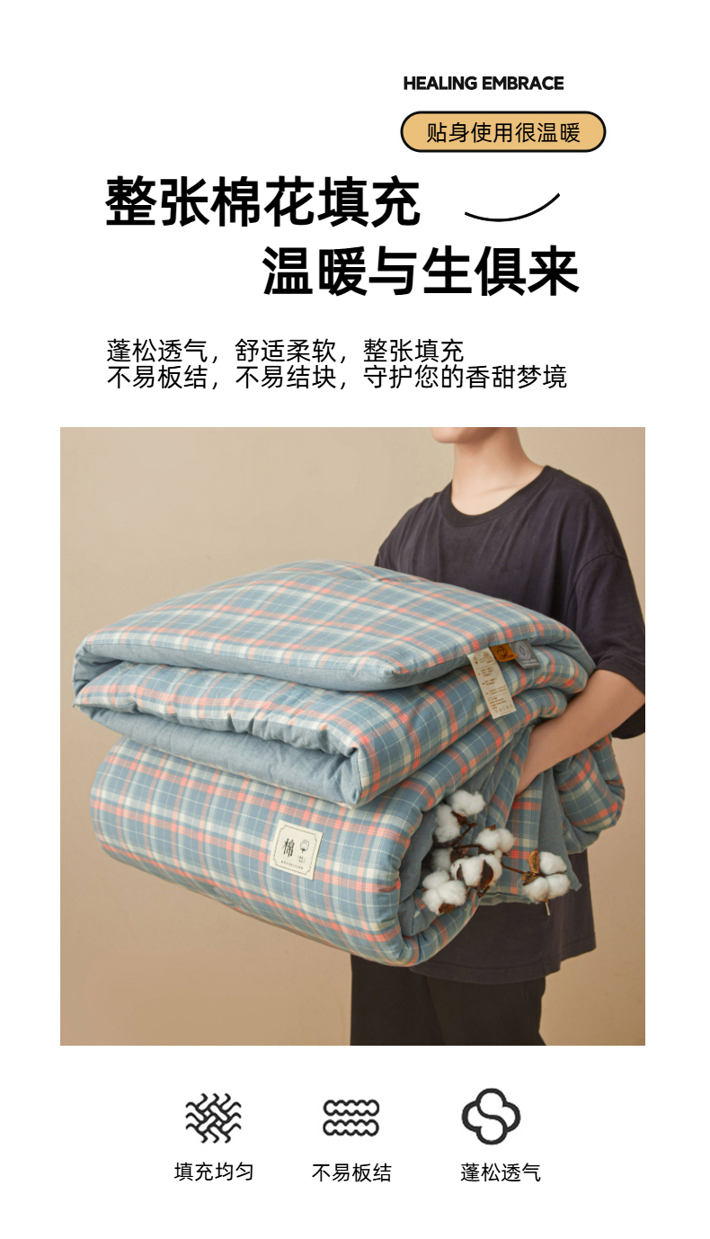 • 91家纺网 家纺一手货源 找家纺 爱屋及屋 2025新款无印风水洗棉棉花冬被被子被芯 格韵蓝