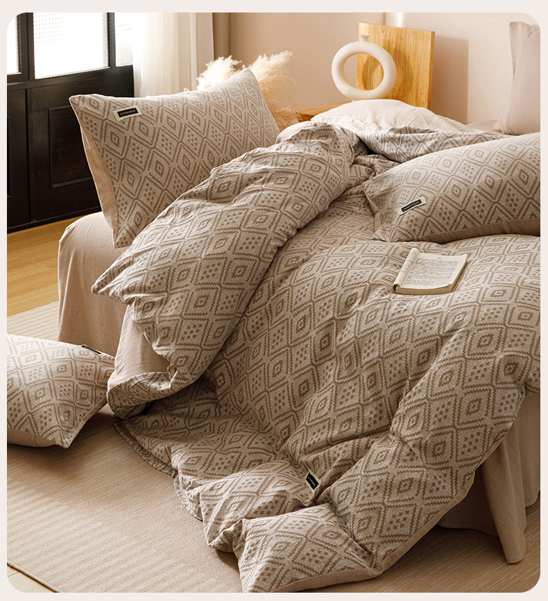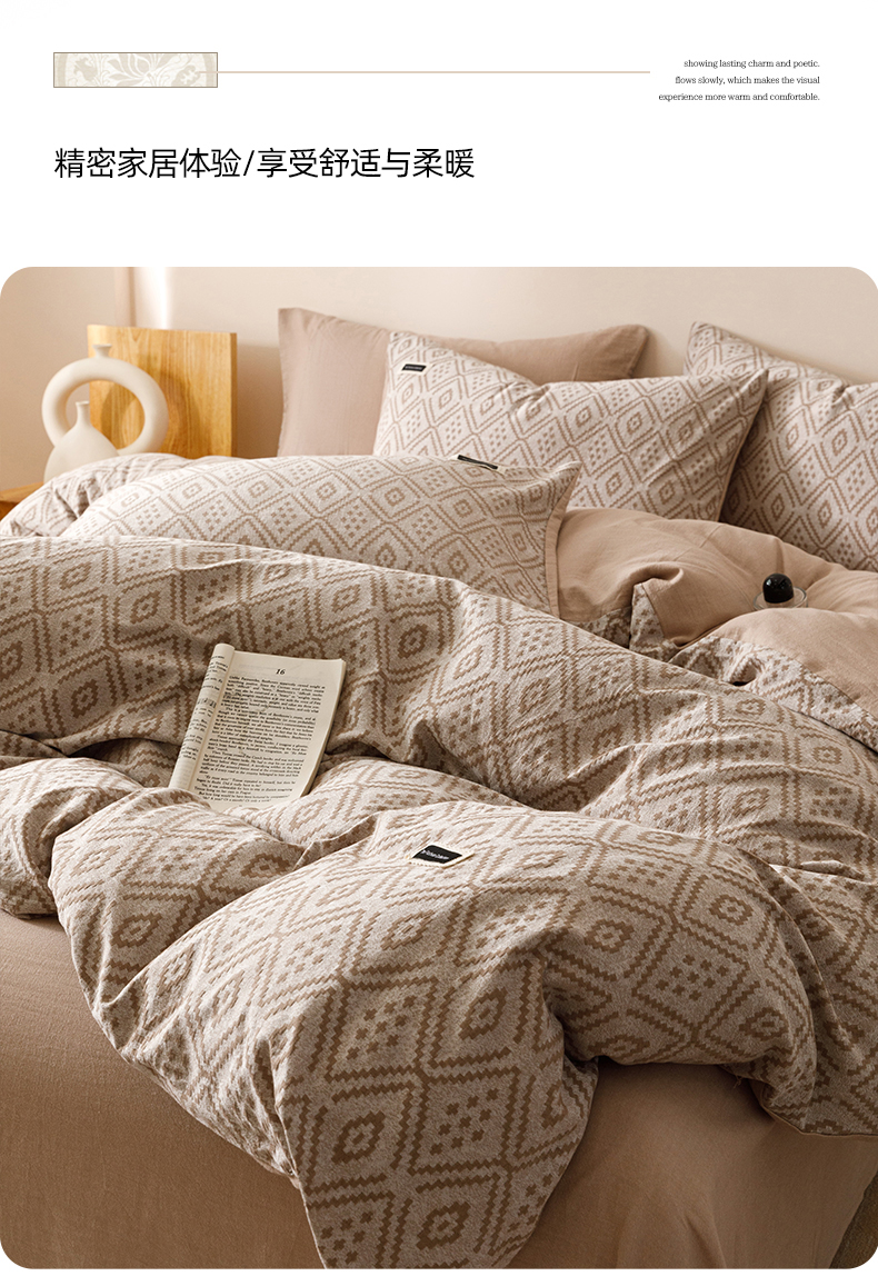 商品名称:(总)艾莱家纺 2025新款棉麻风色织提花水洗棉全棉纯棉四件套-梦享