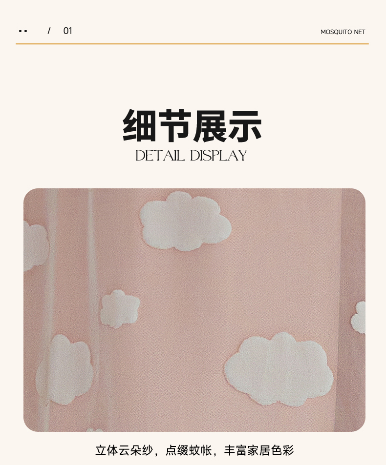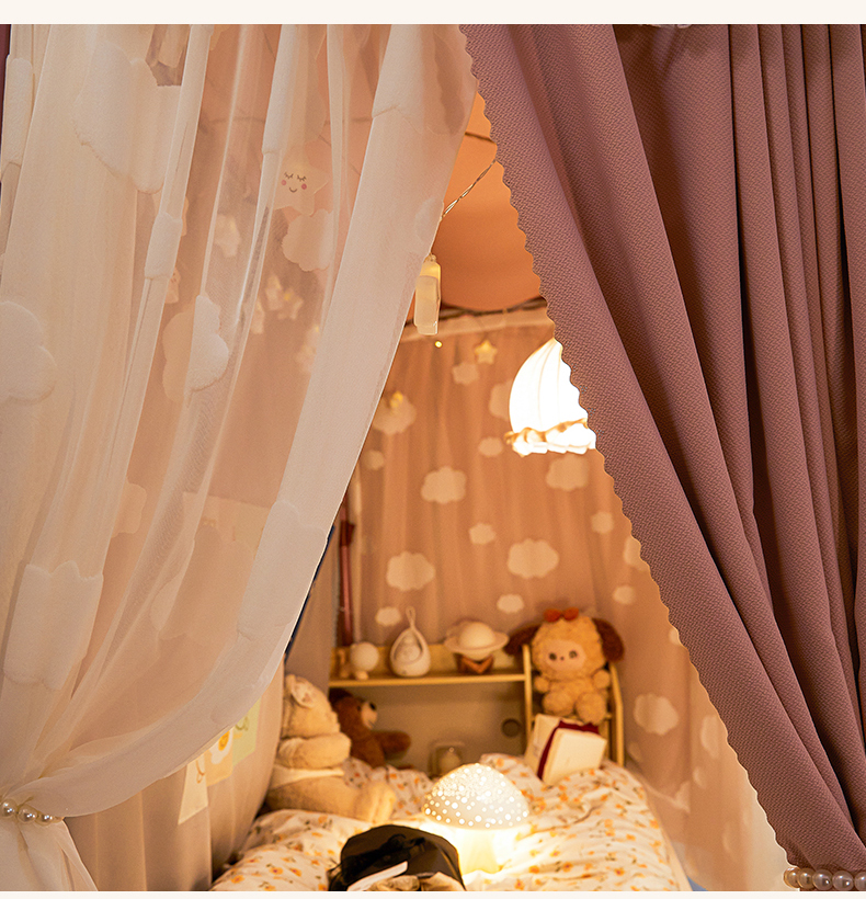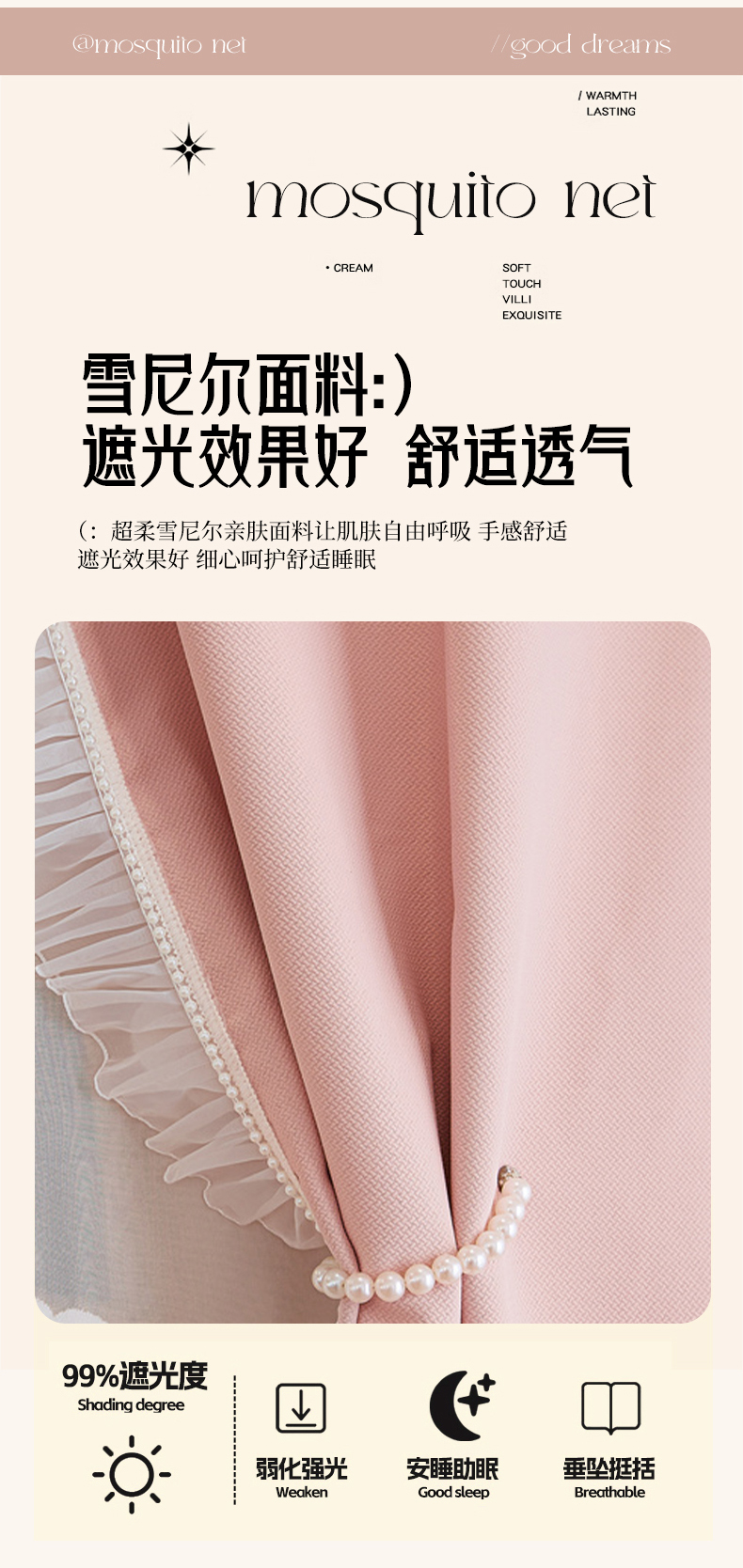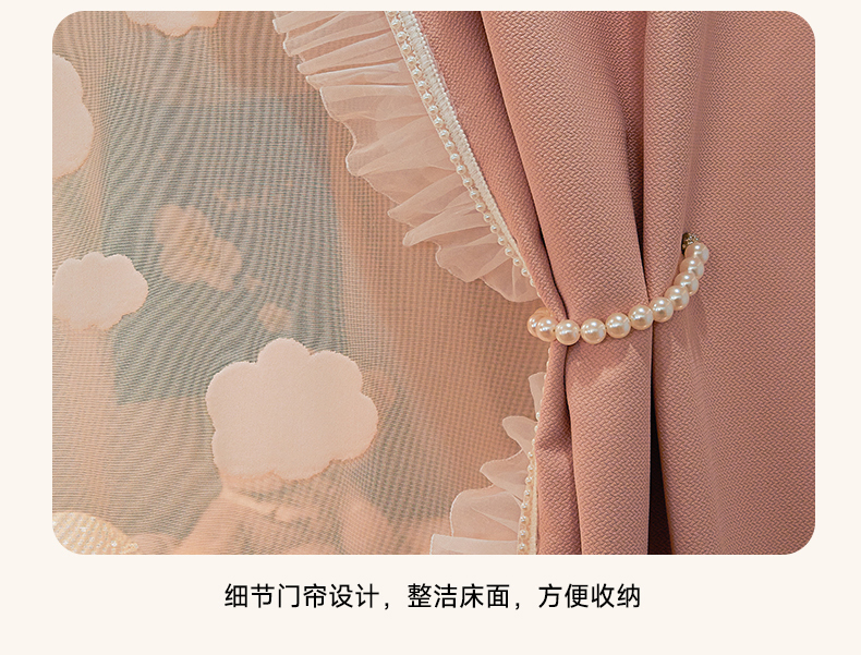 商品名称:飞轮海蚊帐 2025新款雪尼尔法式遮光床帘-XD系列 云朵-粉