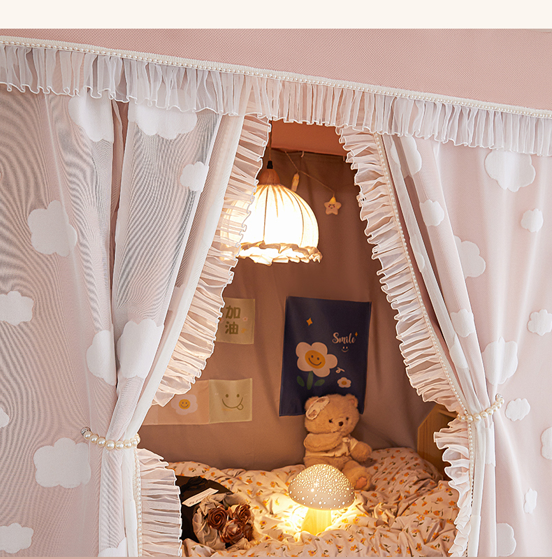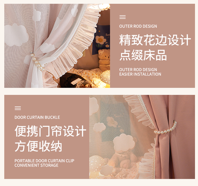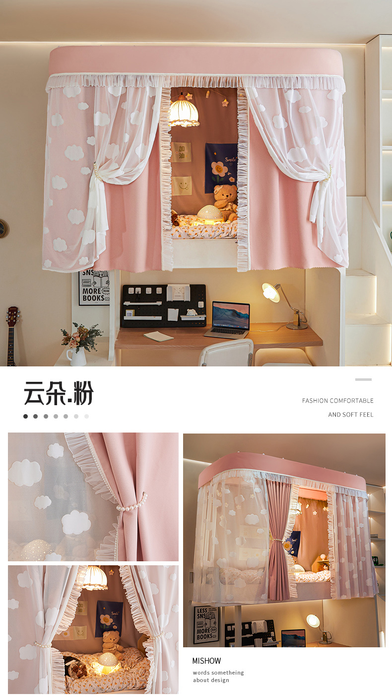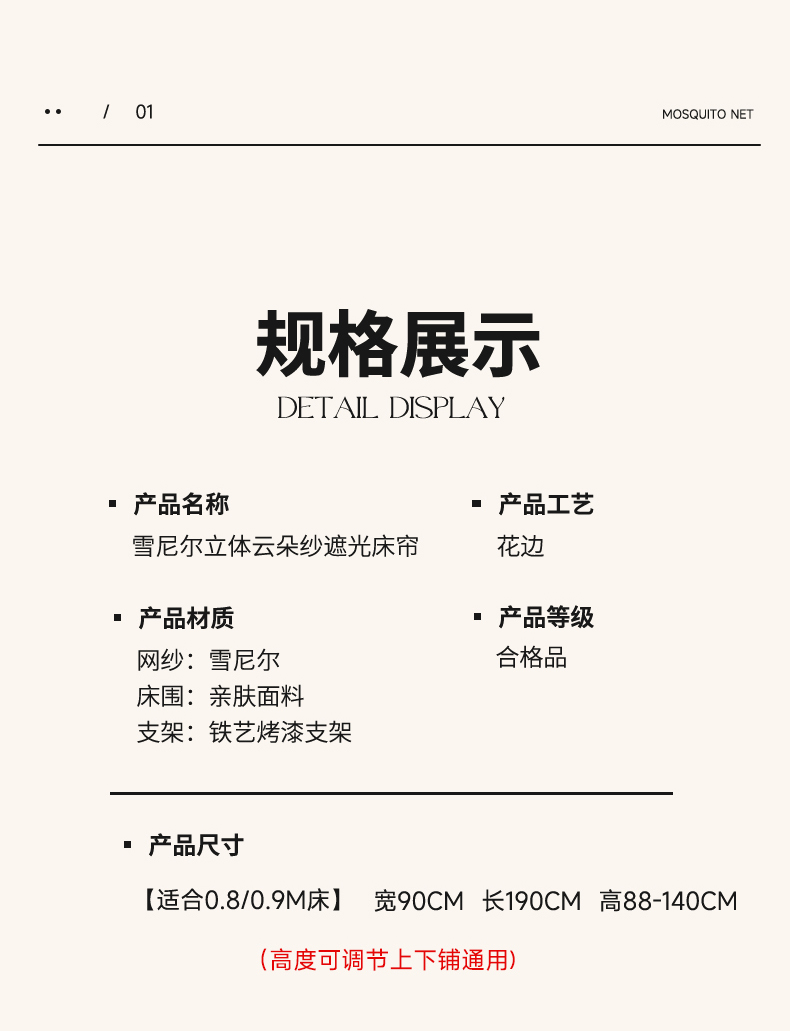 商品名称:飞轮海蚊帐 2025新款雪尼尔法式遮光床帘-XD系列 云朵-粉