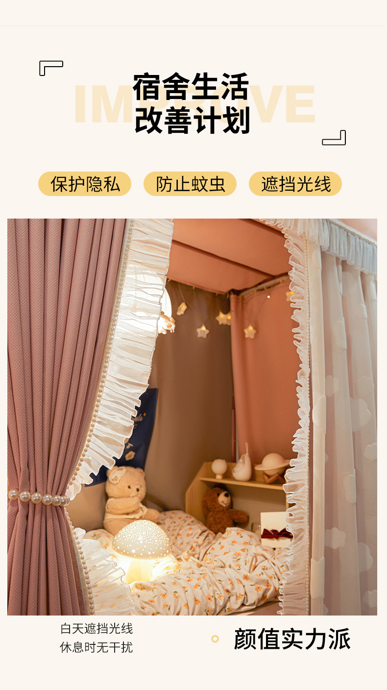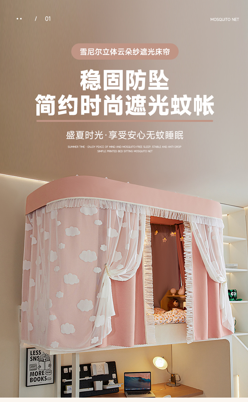 飞轮海蚊帐 2025新款强遮光防蚊学生蚊帐-XZ-99(靠墙帘选配)熊猫宝,熊猫宝