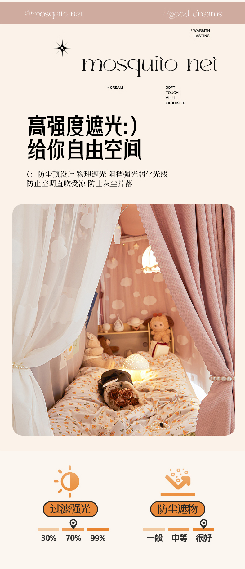 (总)飞轮海 2025新款全包遮光防蚊蚊帐Z31,黛蓝,奶油黄,香槟