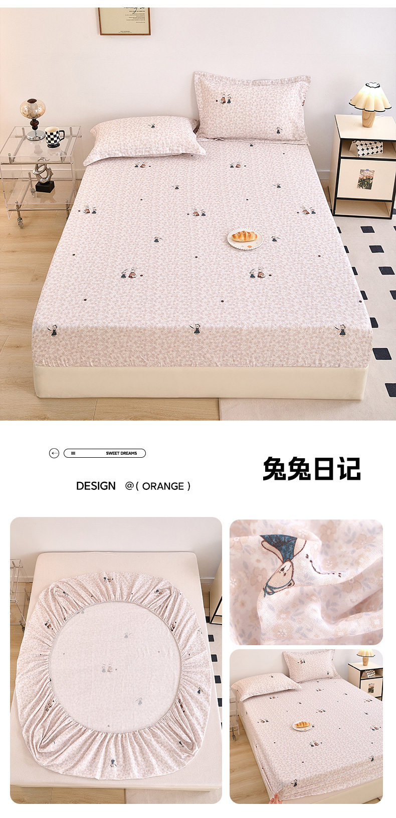 • 91家纺网 家纺一手货源 找家纺 锦罗绣 2025新款全棉双层纱印花系列单床笠 兔兔日记