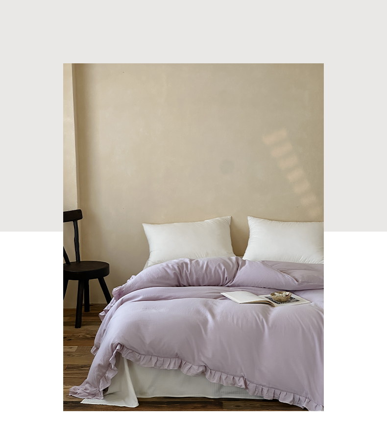 商品名称:三味舒屋 2025新款花边美学全棉双层纱单品单被套 香芋奶昔