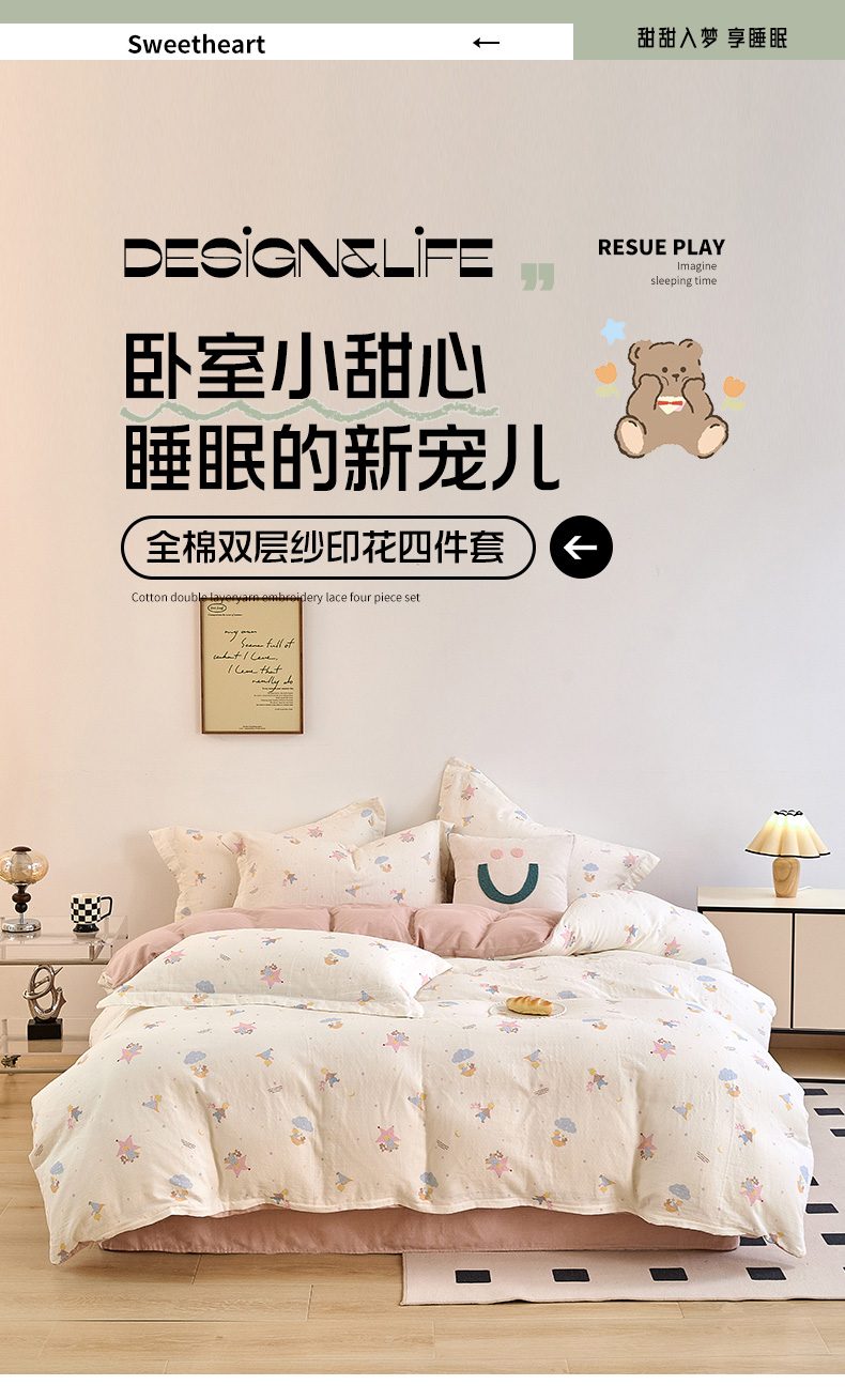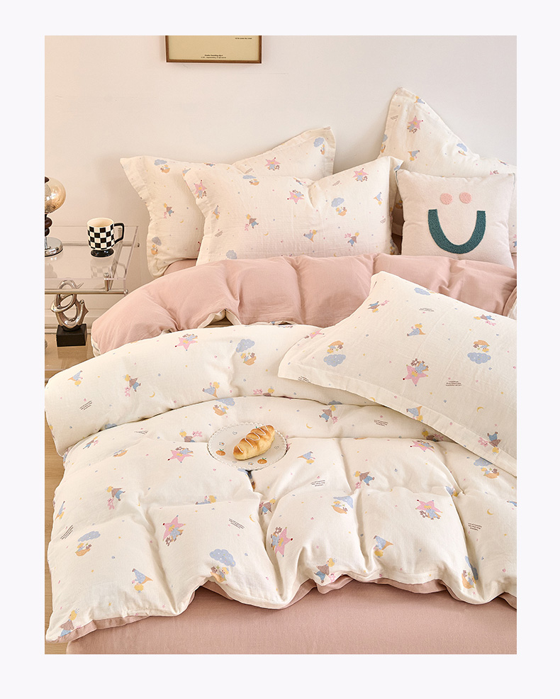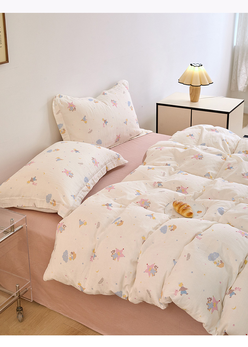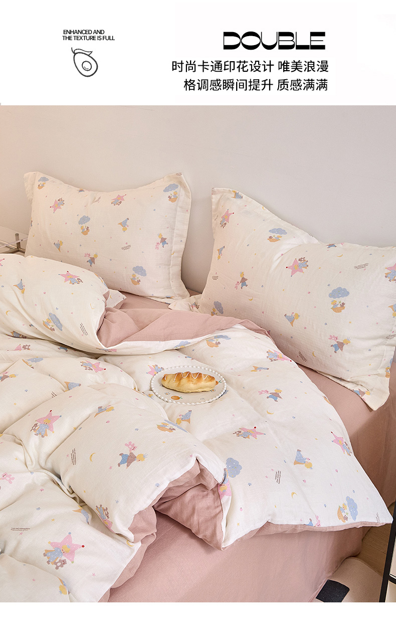 当前位置: 91家纺网 > 商品网购 > 床品套件 > 四件套 > 全棉普通四件套 > 2025新款全棉双层纱印花四件套(第二批)宝贝乐园