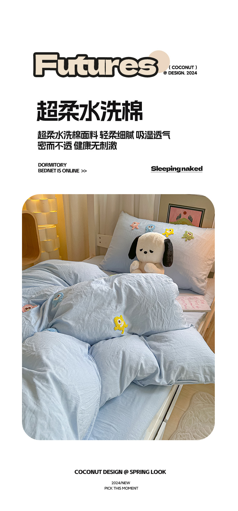 当前位置: 91家纺网 > 商品网购 > 床品套件 > 三件套 > 爱彼家纺 2025新款超柔水洗棉怪兽毛巾绣学生宿舍三件套上下铺三件套 怪兽-奶黄