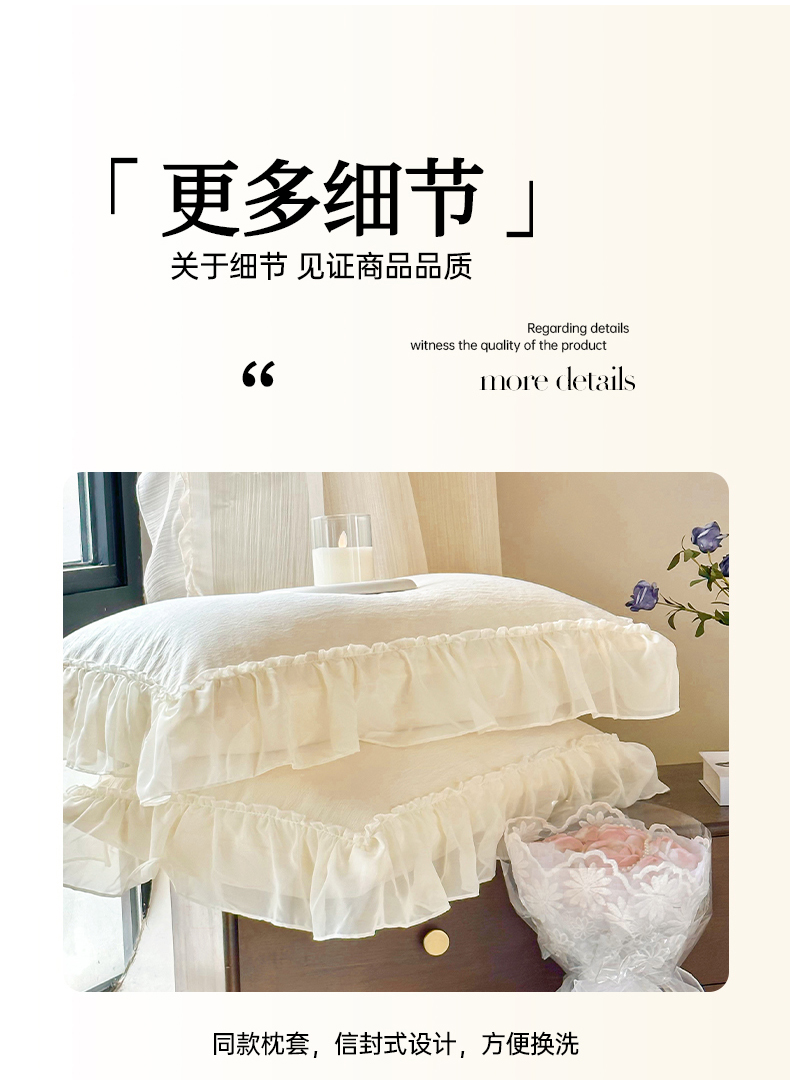 (总)庭笙 2025新款仙女小清新褶皱裙边少女背带公主裙摆法式梦幻纱蕾丝四件套,公主裙摆-米白,公主裙摆-浅粉