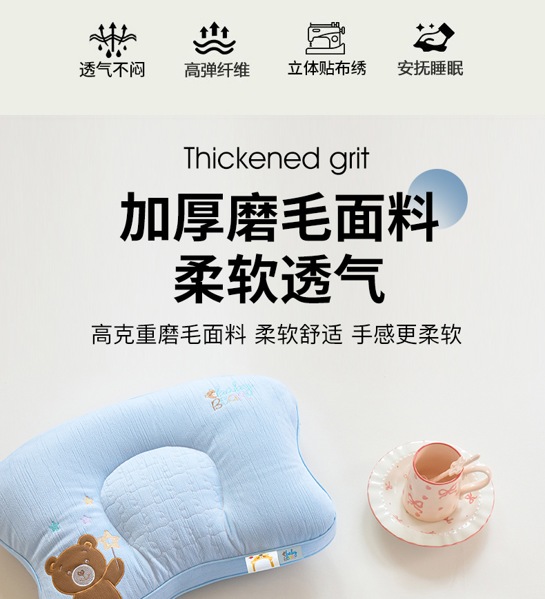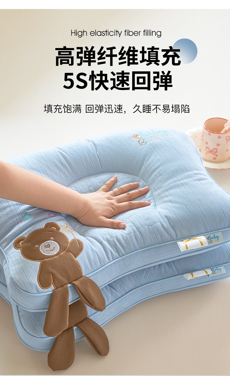 商品名称:鼎晟纺 2025新款小熊贴布绣儿童枕护颈枕头枕芯 儿童枕小熊粉