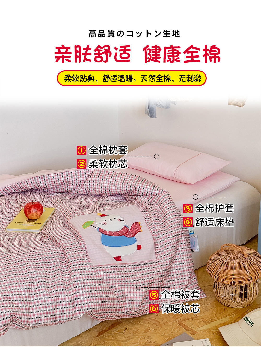 2斤+1斤棉花内胆7件套【1斤+2斤被芯+1.5斤床垫芯+枕芯+三件套】