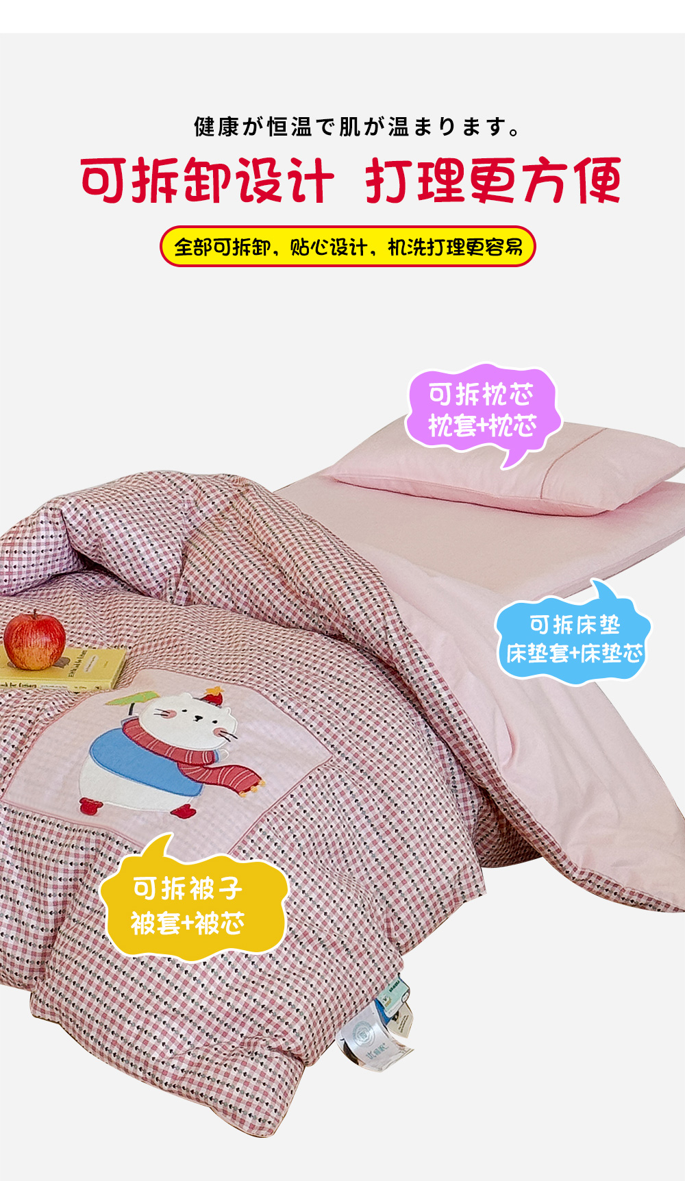 (总)喜多兔儿童家纺 2025新款小美好13372纯棉绣花幼儿园被子三件套多件套