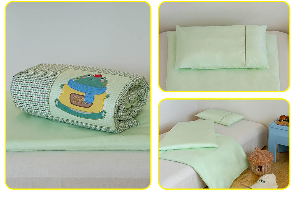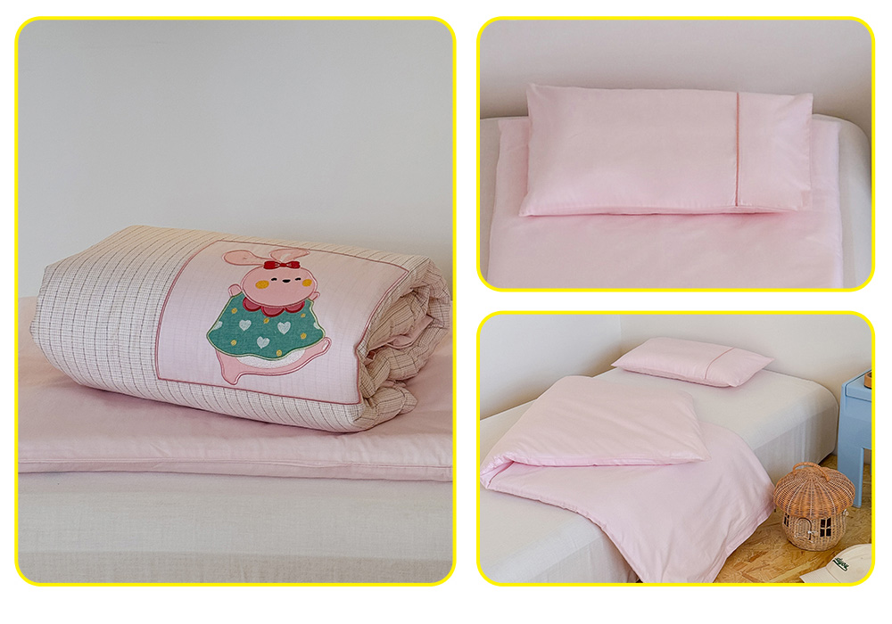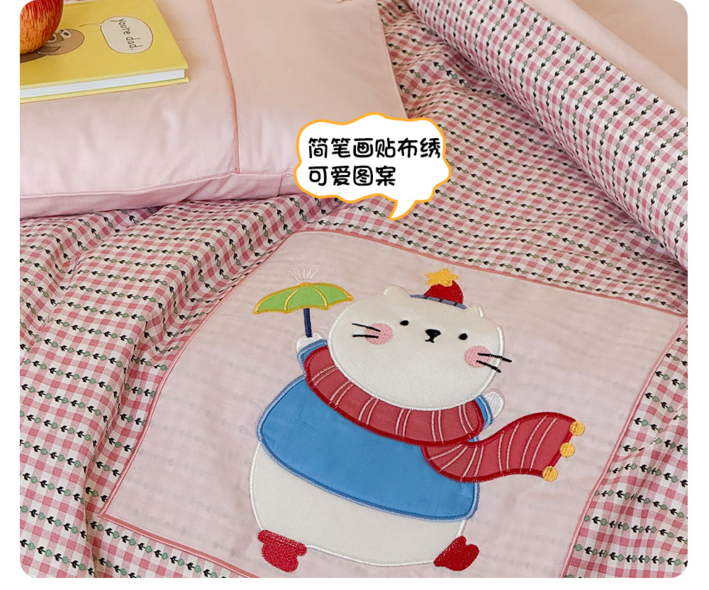 (总)喜多兔儿童家纺 2025春夏新款小软萌贴布绣纱布被,粉色软萌小兔,卡其色软萌小熊,蓝色软萌小象,绿色软萌恐龙,组合图仅供展示