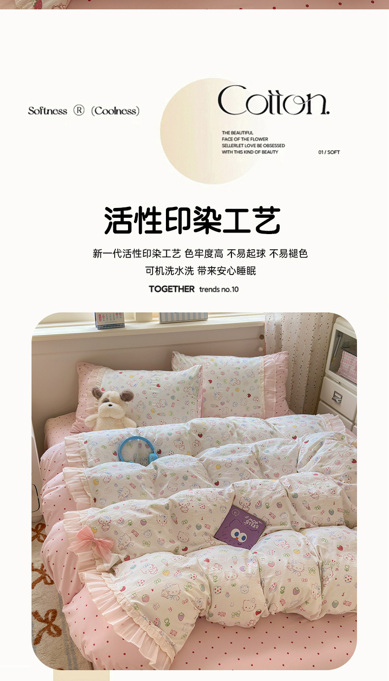 商品名称:(总)一霖家纺 2025新款高克重云朵棉韩系小清新蝴蝶结四件套