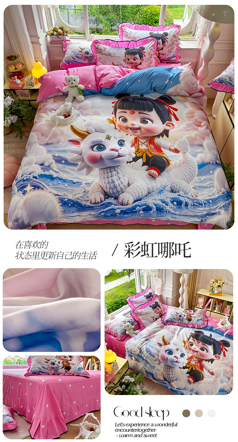 馨语家居 2025新款A类全棉3D大版印花四件套 彩虹哪吒
