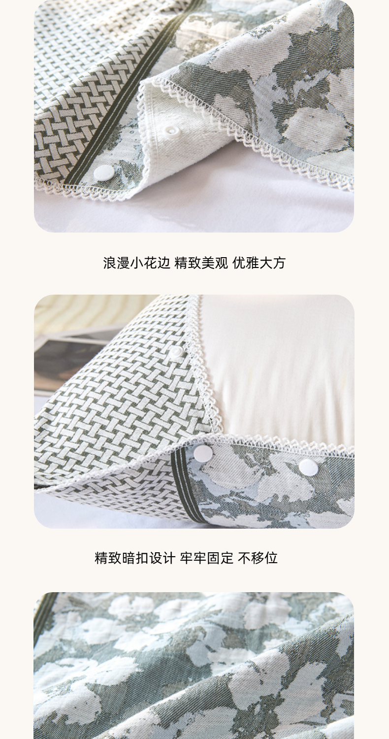 商品名称:悦然毛巾被 2025新款全棉纯棉纱布多功能枕巾枕套带扣子 田园碎花灰