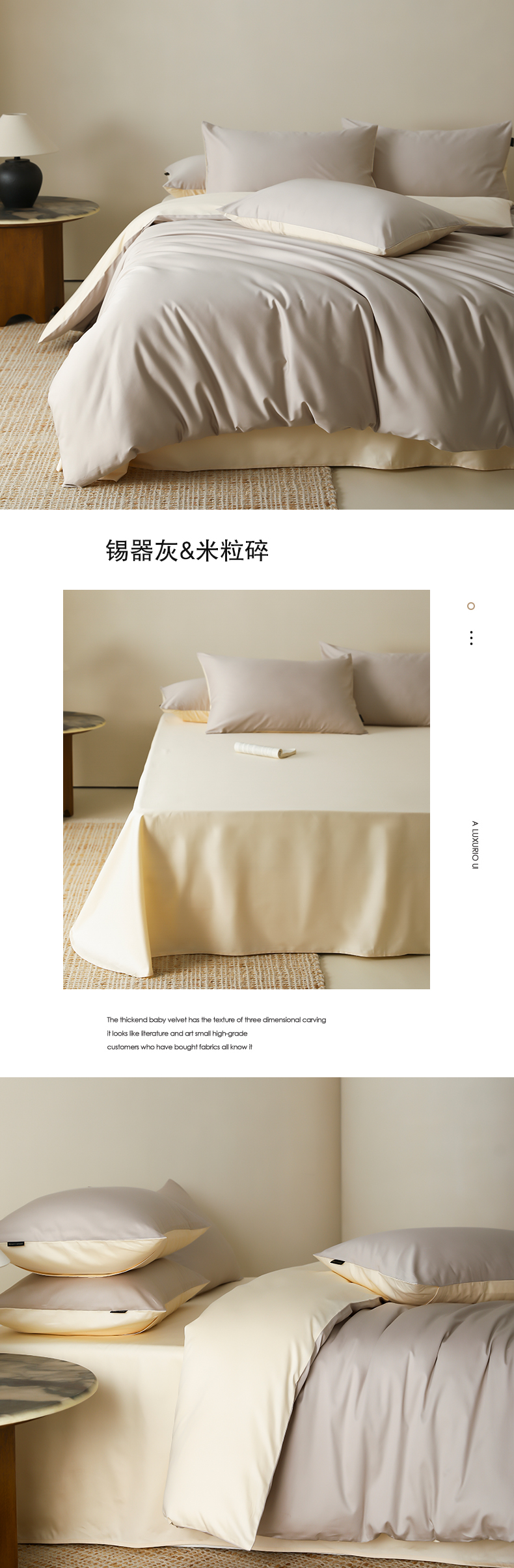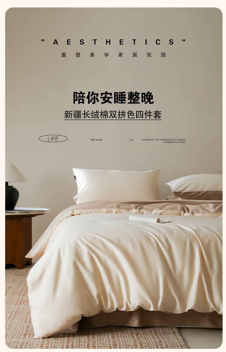 当前位置: 91家纺网 > 商品网购 > 床品套件 > 四件套 > 全棉普通四件套 > 云栖家居 2025新款全棉纯棉纯色双拼色长绒棉纯棉四件套--极简 组合图仅供参考