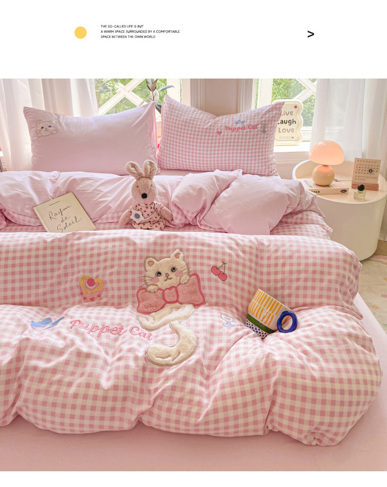 当前位置: 91家纺网 > 商品网购 > 床品套件 > 四件套 > 水洗棉四件套 > 雨帆家纺 2025新款可爱卡通水洗棉贴布绣四件套 奶粉小猫
