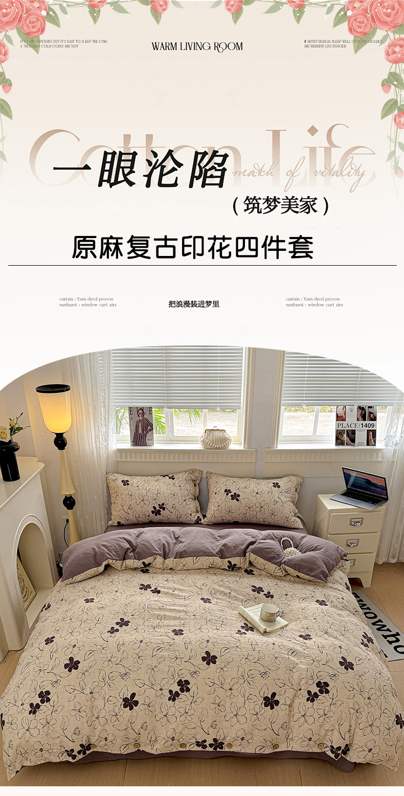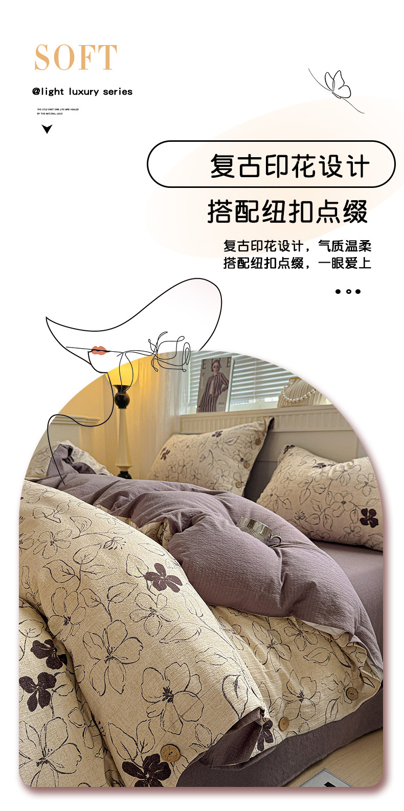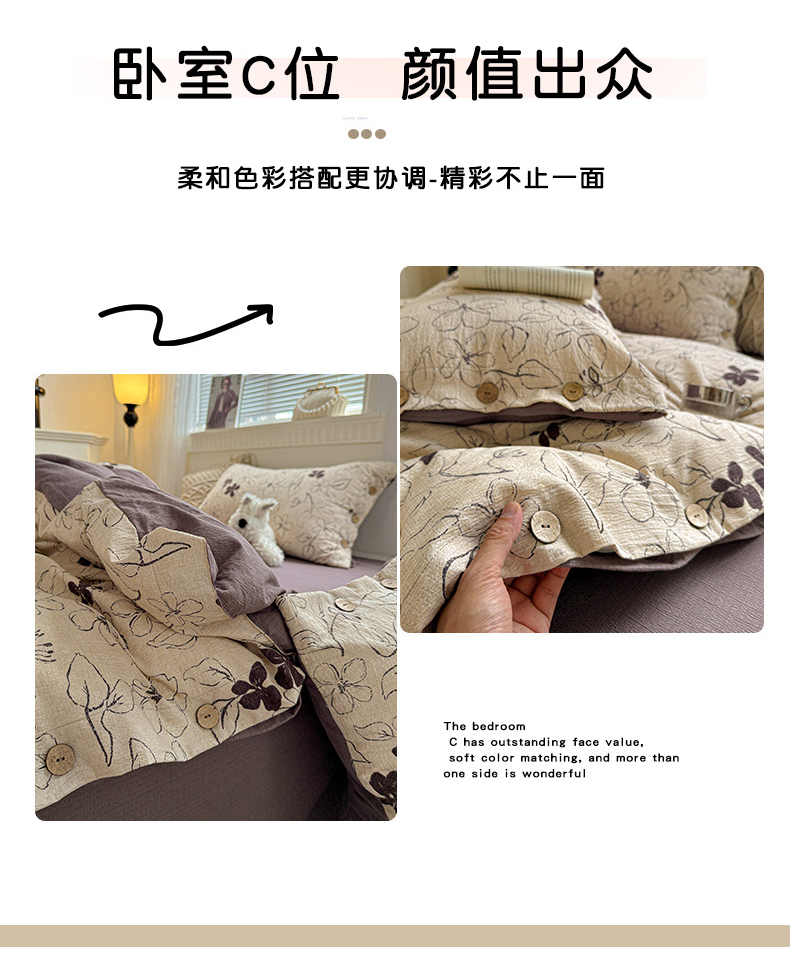 当前位置: 91家纺网 > 商品网购 > 床品套件 > 四件套 > 其它四件套 > 水墨江南 2025新款原麻复古印花纽扣款四件套 绽放