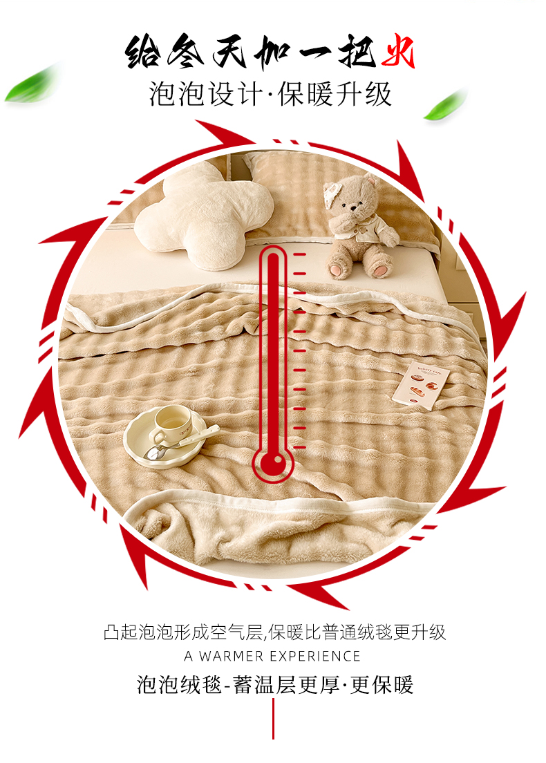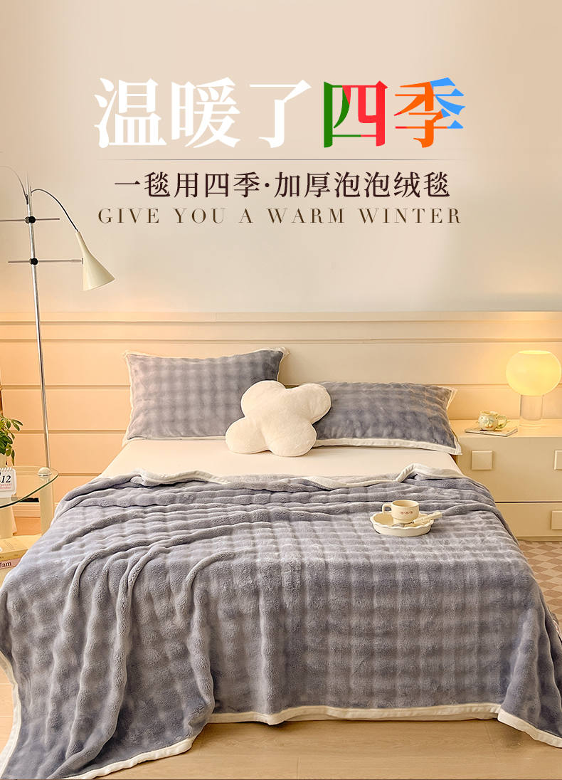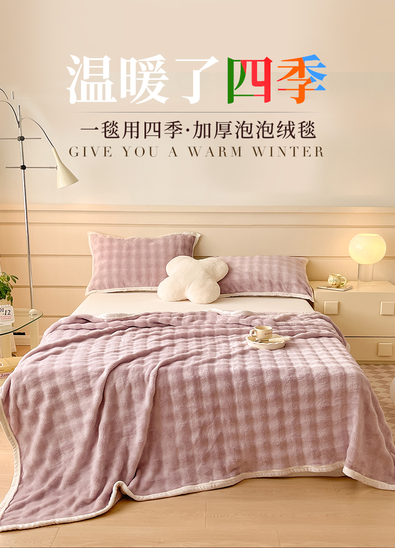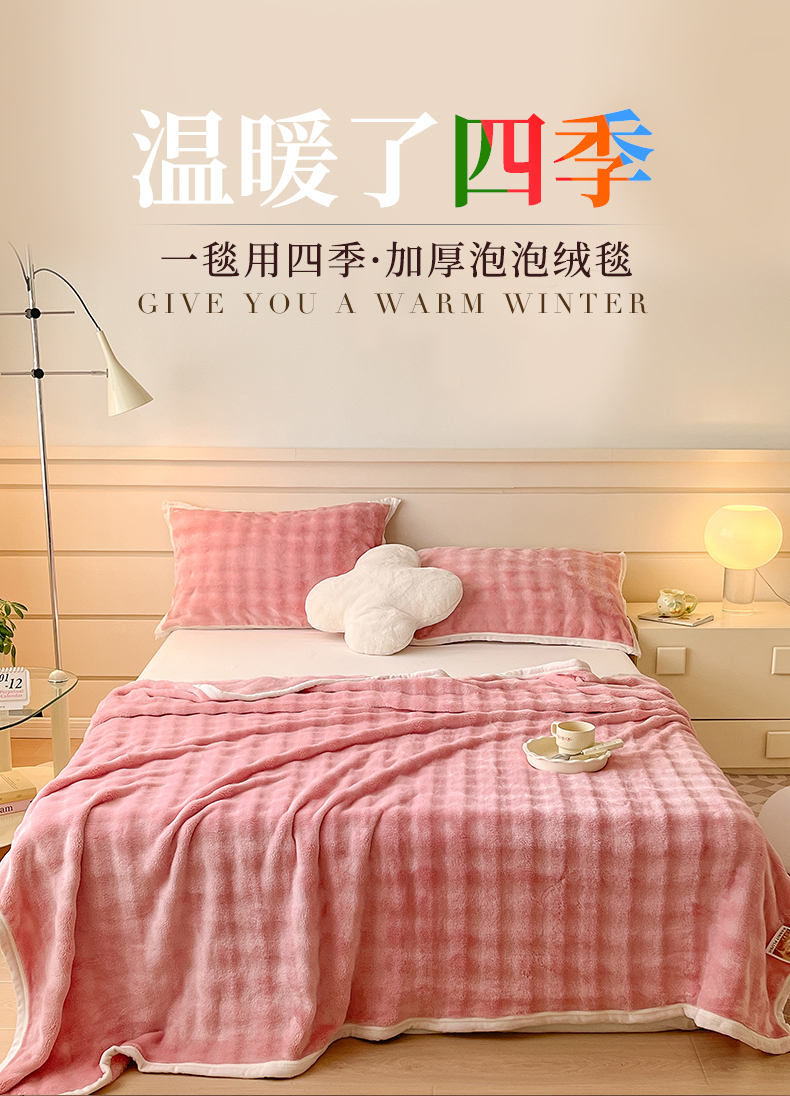 (总)莱凯家纺 2025新款牛奶绒泡泡毯子盖毯毛毯-可跨境
