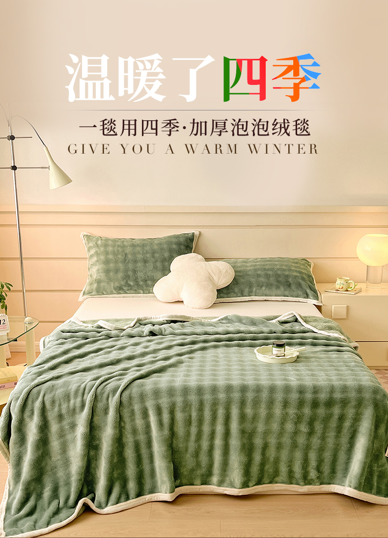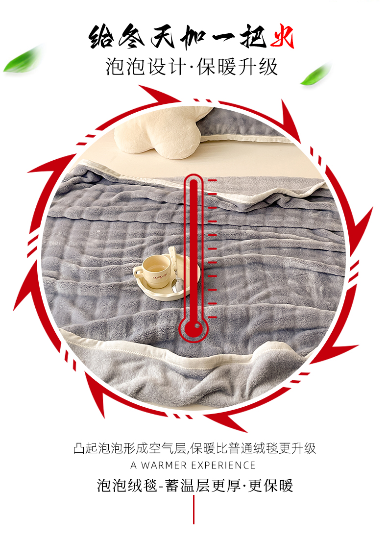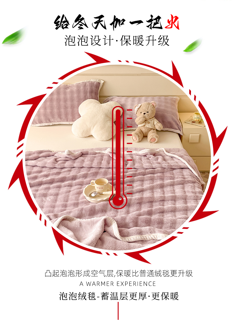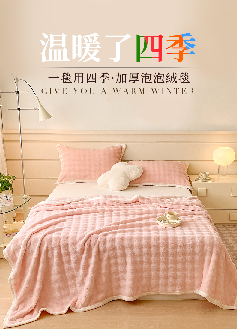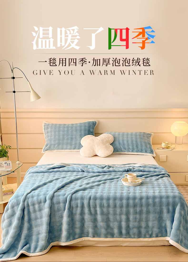 (总)莱凯家纺 2025新款牛奶绒泡泡毯子盖毯毛毯-可跨境