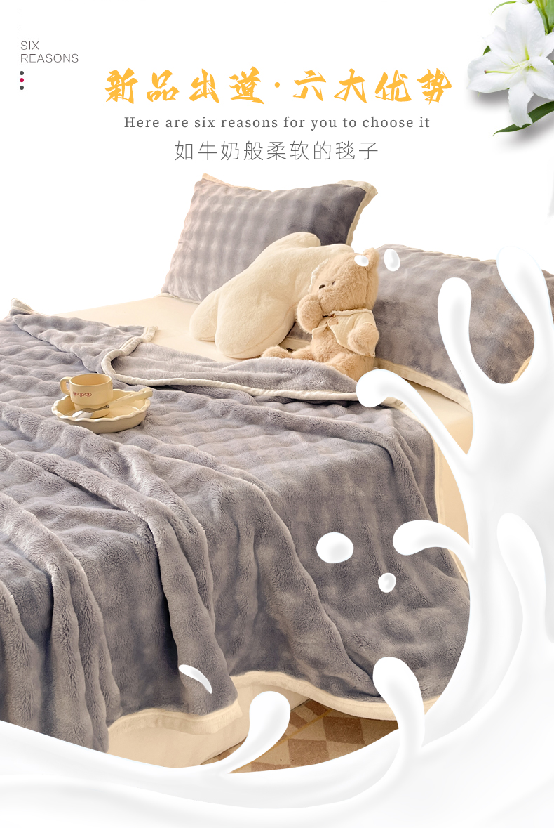 商品名称:(总)莱凯家纺 2025新款牛奶绒泡泡毯子盖毯毛毯-可跨境