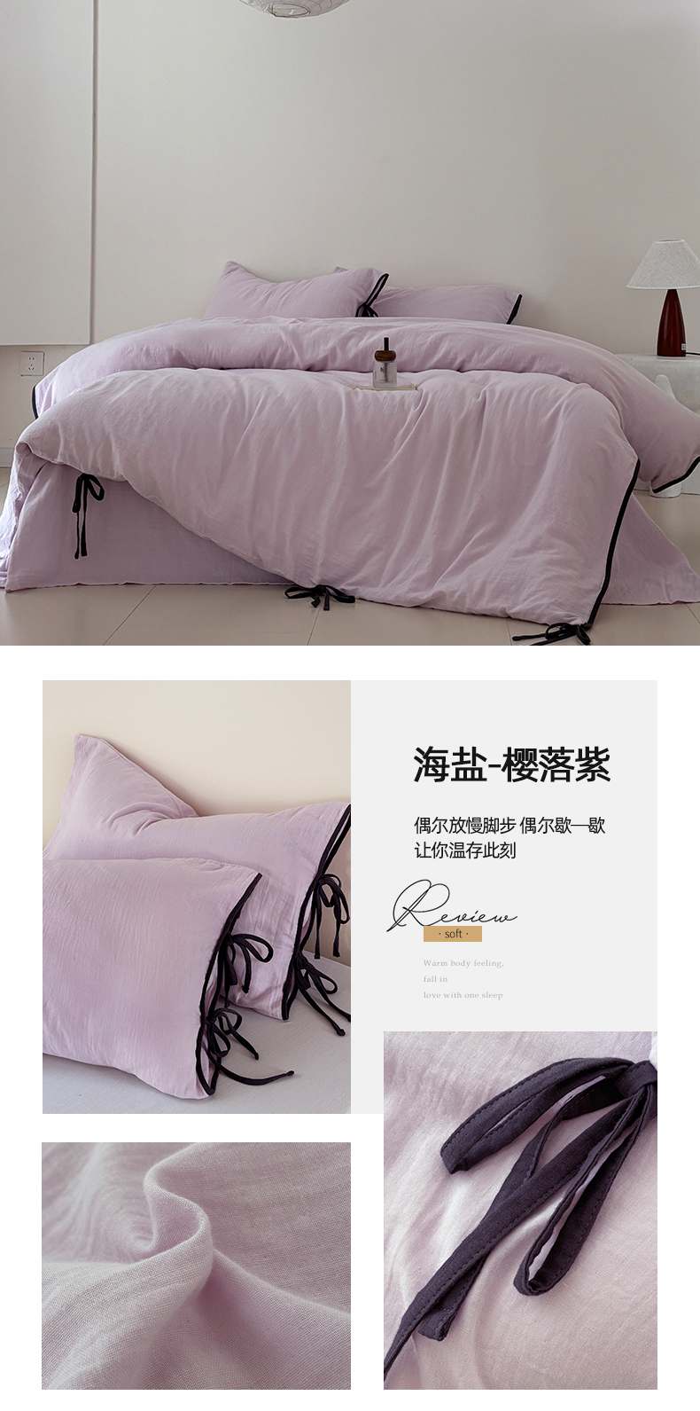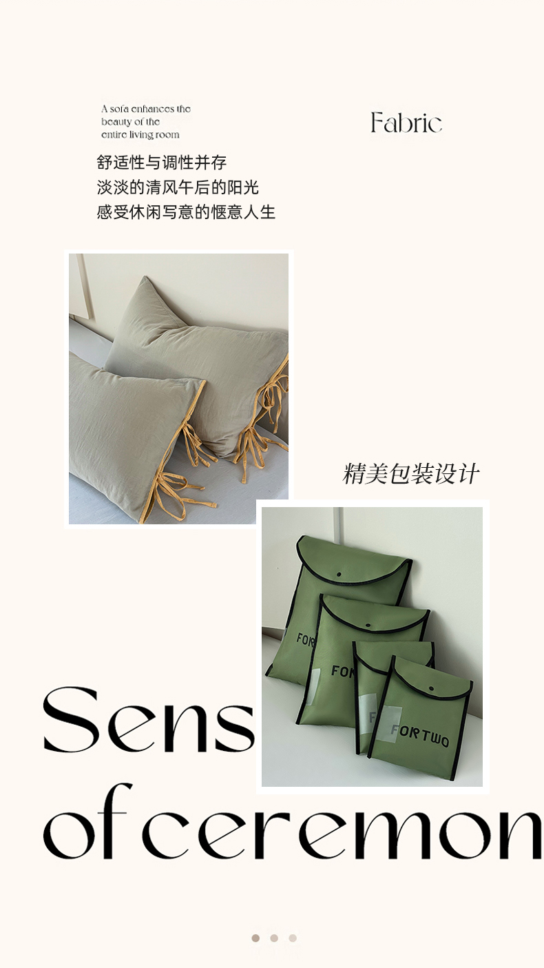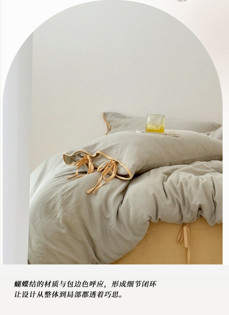 床上用品 > 被套 > FORTWO家纺原创设计(FOR TWO家纺) 2025新款40支双层纱撞色包边蝴蝶结款单被套-海盐 海盐-蜜豆绿