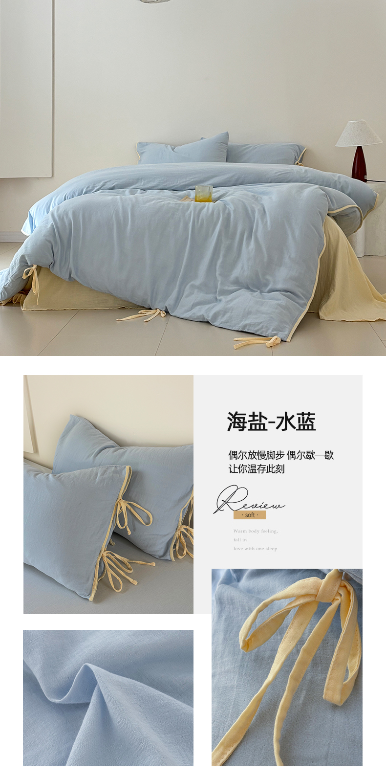 床上用品 > 床笠 > FORTWO家纺原创设计(FOR TWO家纺) 2025新款40支双层纱撞色包边蝴蝶结款单床笠-海盐 海盐-青石绿