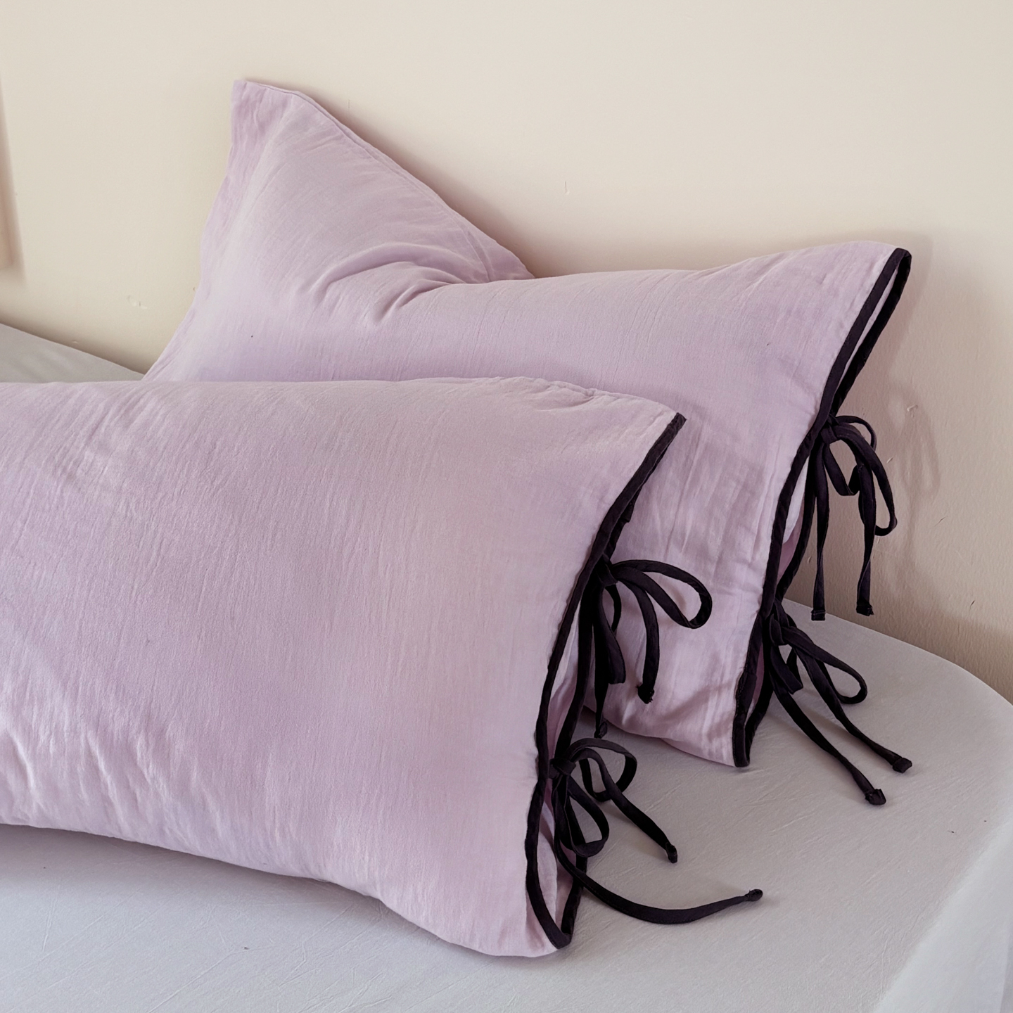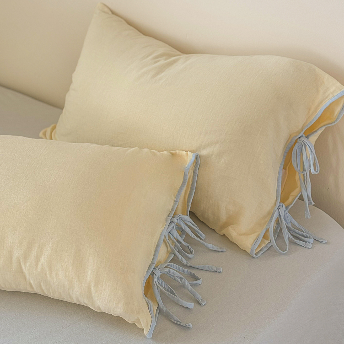 FORTWO家纺原创设计(FOR TWO家纺) 2025新款40支双层纱撞色包边蝴蝶结款单枕套-海盐 海盐-水蓝