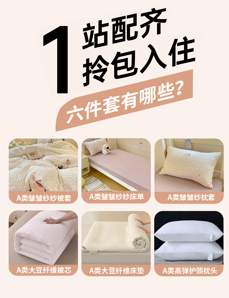 当前位置: 91家纺网 > 商品网购 > 床品套件 > 六件套 > 丽美人家纺 2025新款A类皱皱纱学生宿舍三件套上下铺三件套六件套 QB时光
