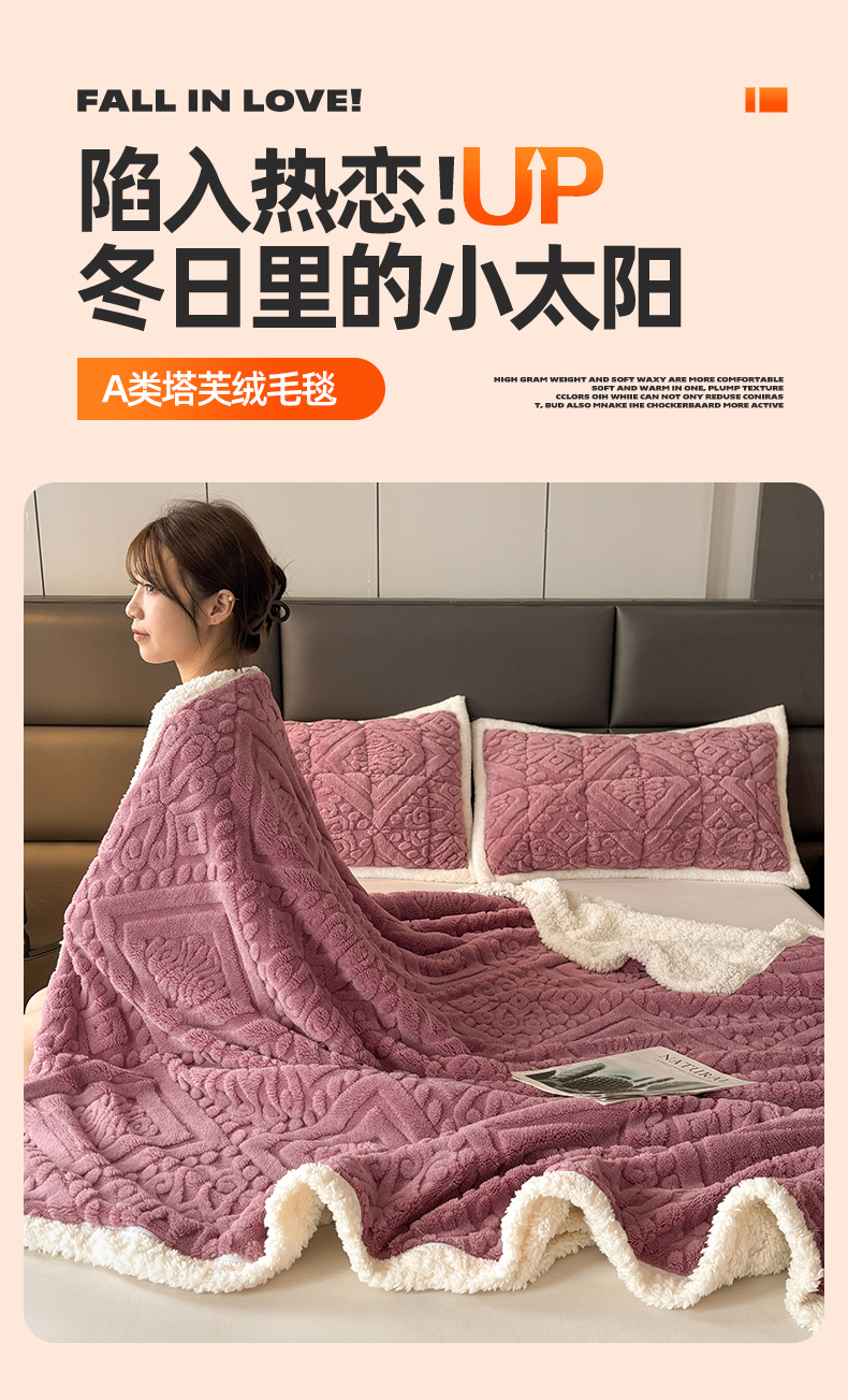 商品名称:雯豆家纺 2025秋冬新款塔芙绒毛毯被套两用毯子办公室居家披肩毯盖毯毯子-英伦 英伦-藕粉