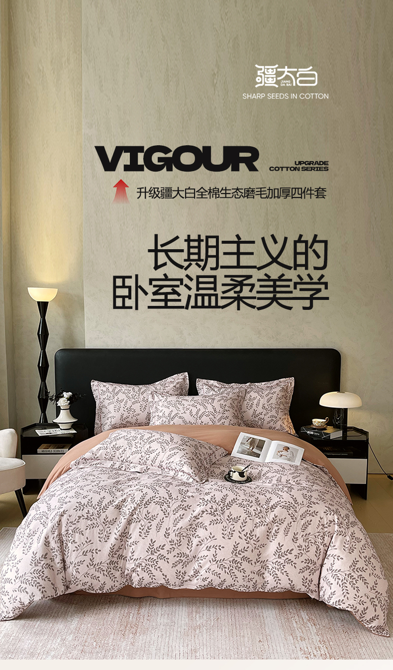 商品名称:麦田家纺 2025新款疆大白全棉纯棉加厚生态磨毛四件套 蔓舒