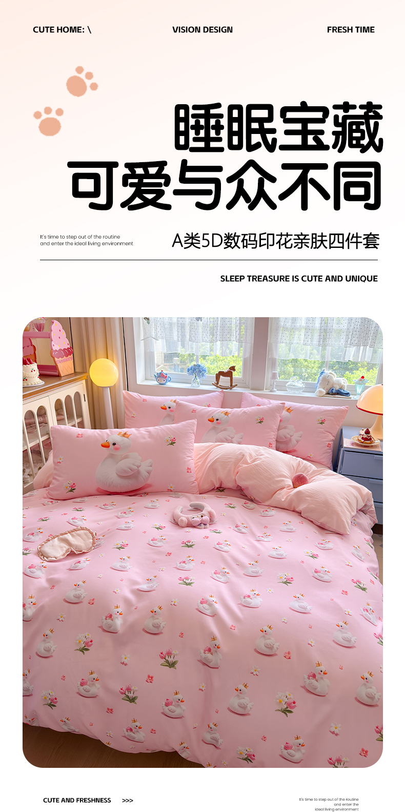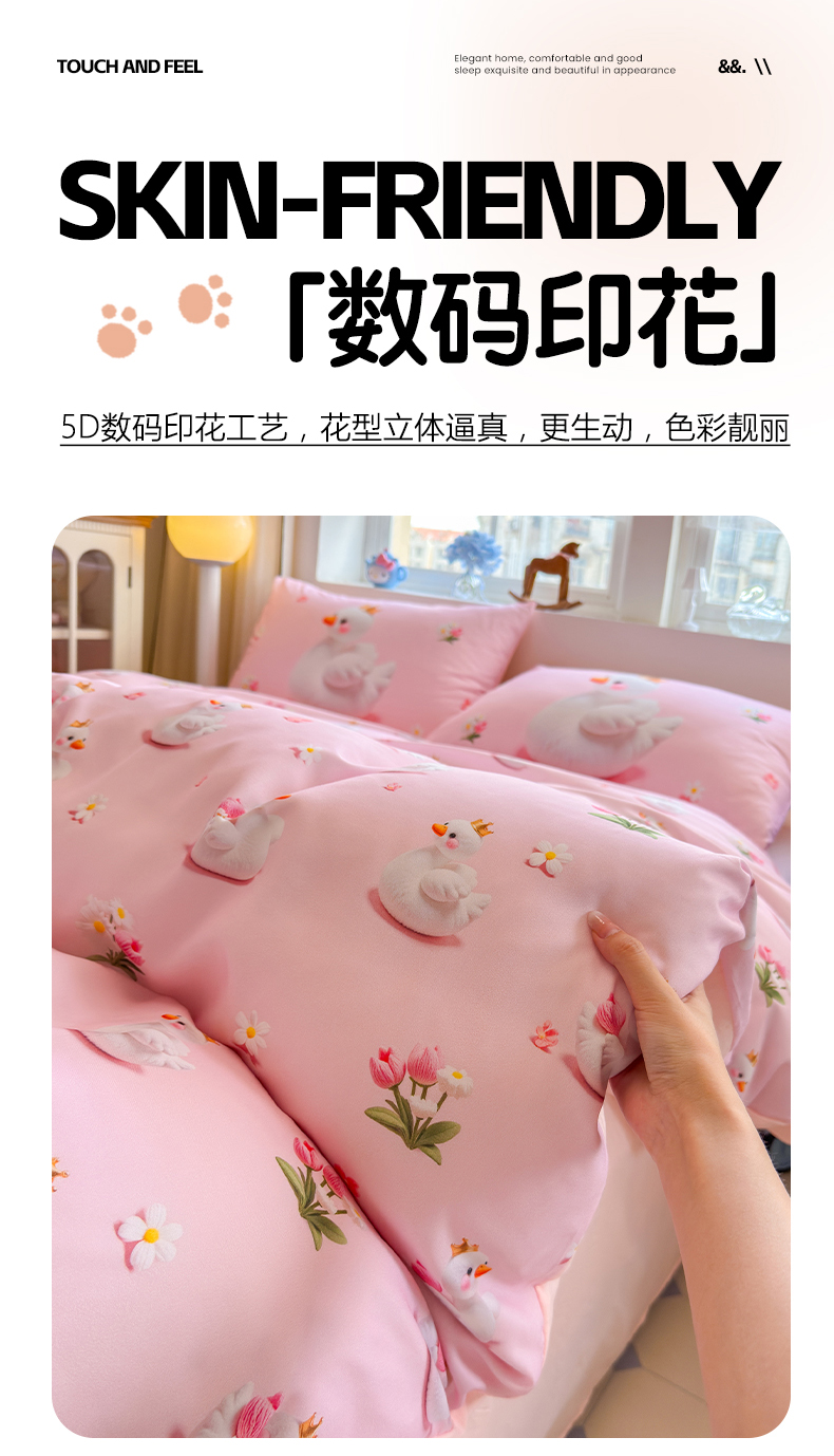 当前位置: 91家纺网 > 商品网购 > 床品套件 > 四件套 > 其它四件套 > 优卡迪家纺馆 2025新款110克5D数码印花四件套 白天鹅