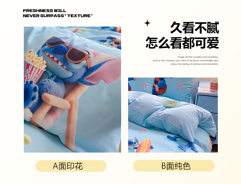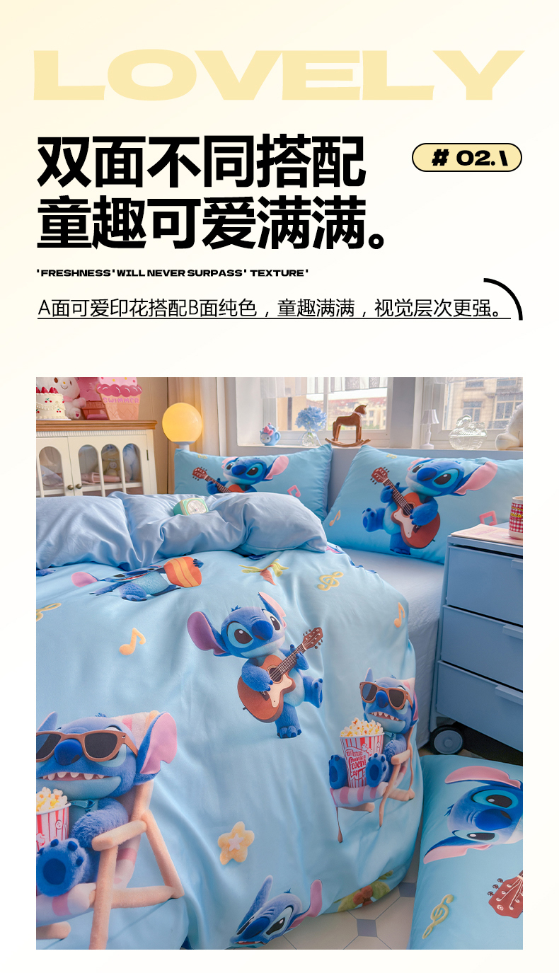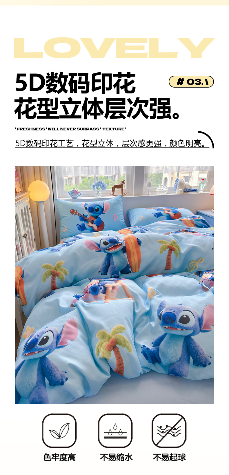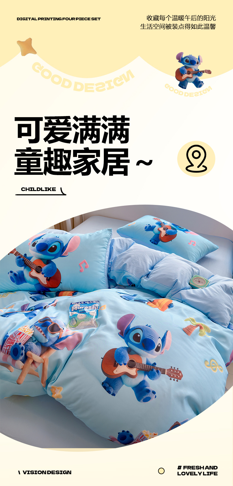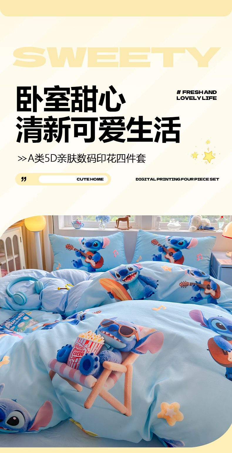 当前位置: 91家纺网 > 商品网购 > 床品套件 > 四件套 > 其它四件套 > 优卡迪家纺馆 2025新款110克5D数码印花四件套 休闲史迪奇-蓝