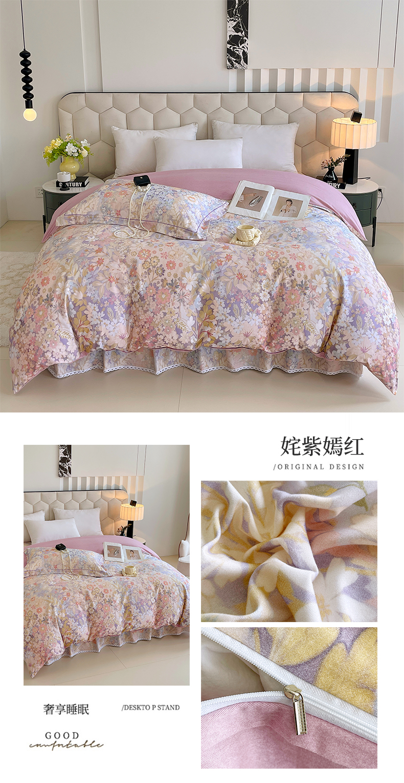 (总)宝齐莱家纺 2025款全棉磨毛印花系列单床裙,姹紫嫣红,国色天香,花开富贵,花前月下,美艳动人,普罗旺斯,诗情画意,时光印记,似水柔情,万紫千红