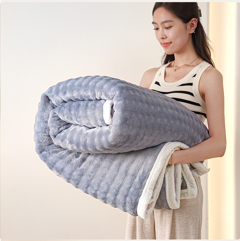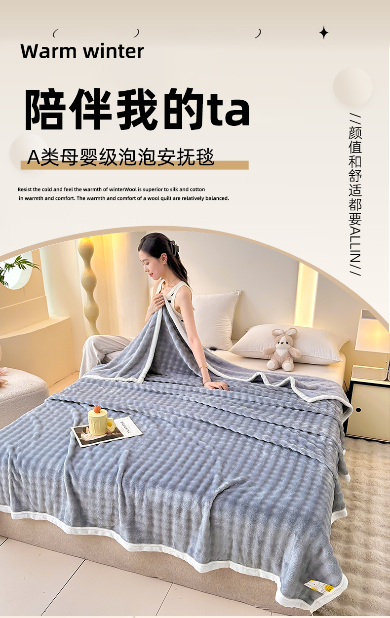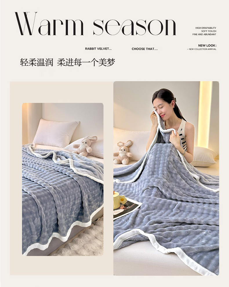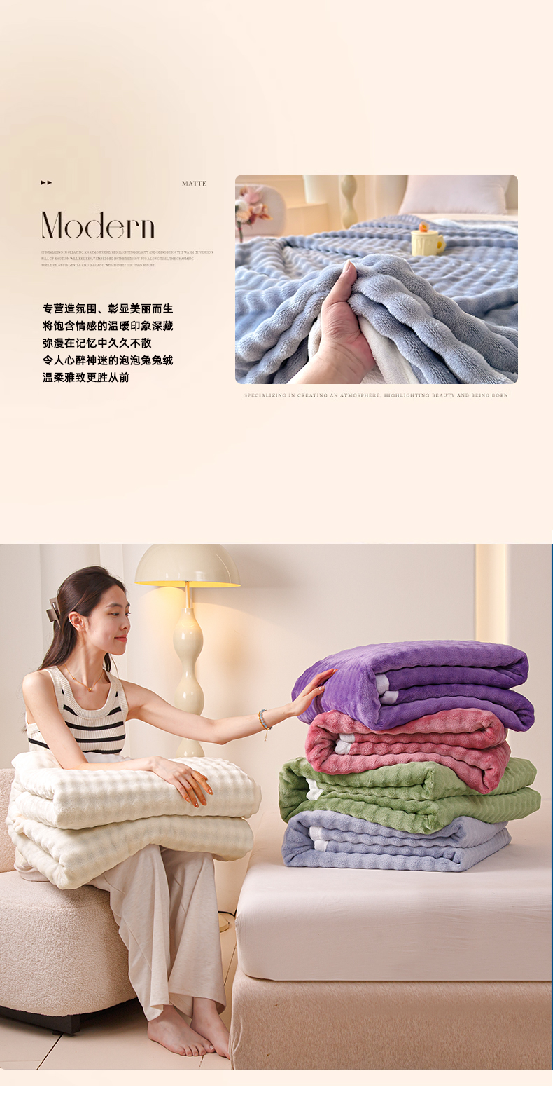 (总)赢盛家纺 2025新款多功能毛毯高克重法莱绒牛奶绒珊瑚绒免免绒包边毛毯毯子盖毯午睡毯,白色,粉色,蓝色,绿色,紫色