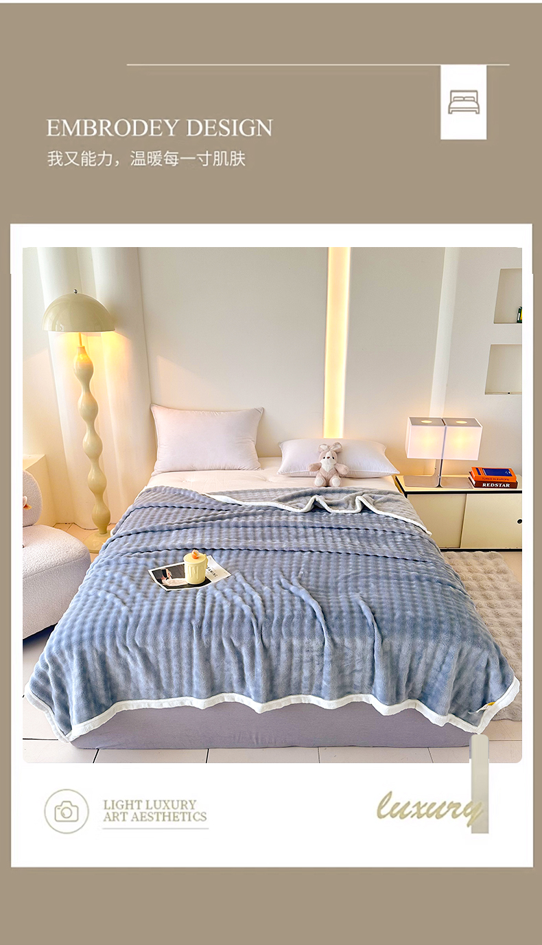 赢盛家纺 2025新款多功能毛毯高克重法莱绒牛奶绒珊瑚绒免免绒包边毛毯毯子盖毯午睡毯 蓝色