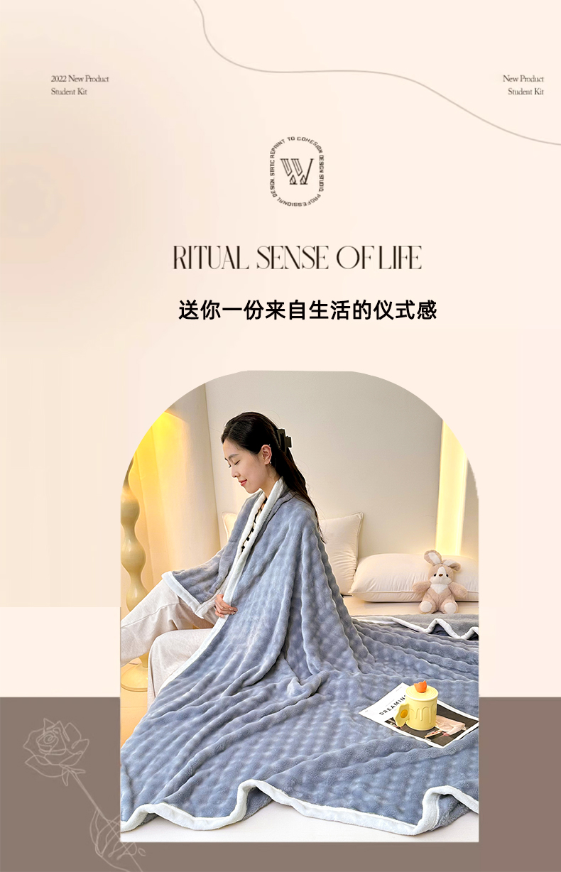 商品名称:赢盛家纺 2025新款多功能毛毯高克重法莱绒牛奶绒珊瑚绒免免绒包边毛毯毯子盖毯午睡毯 蓝色
