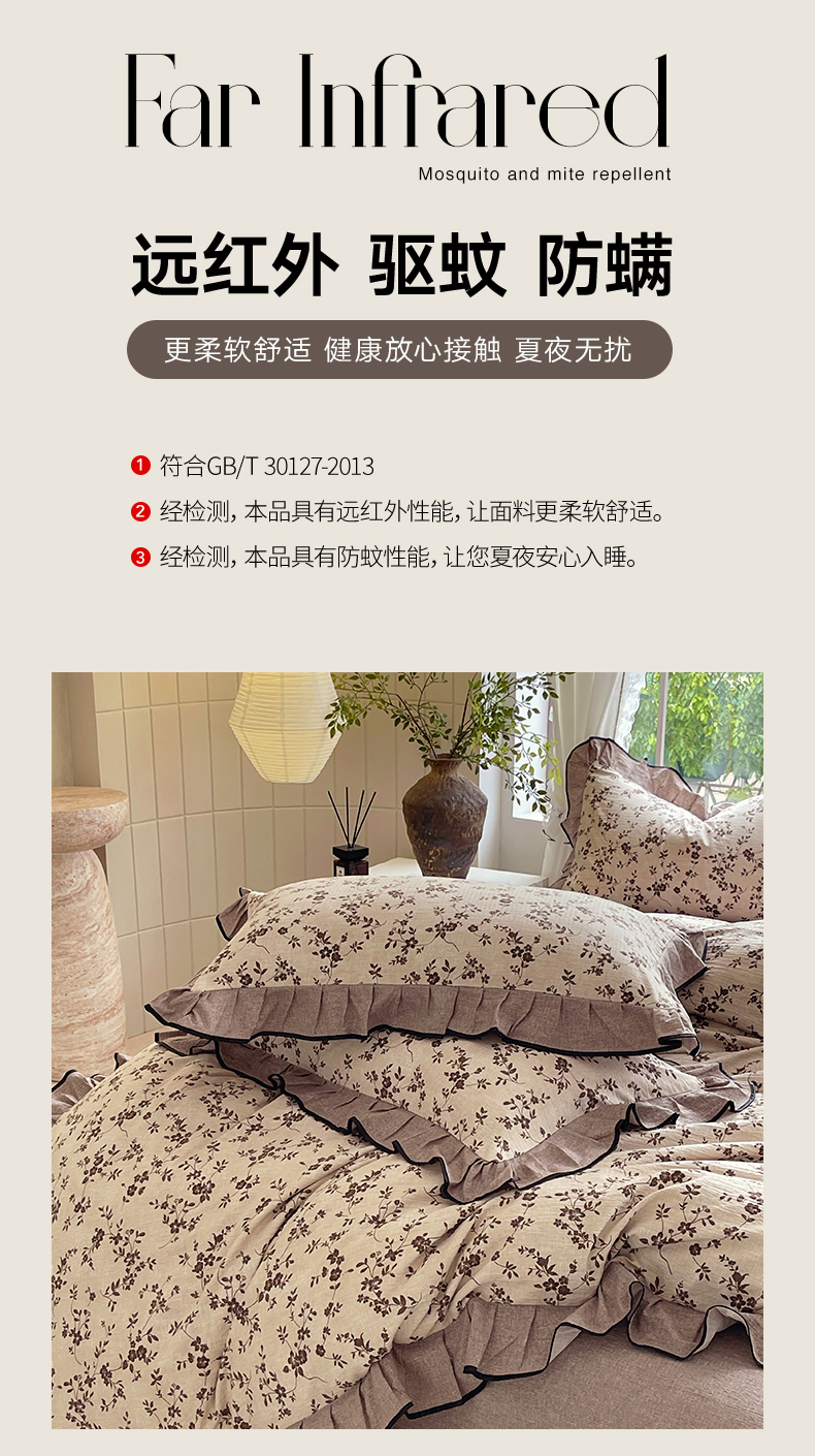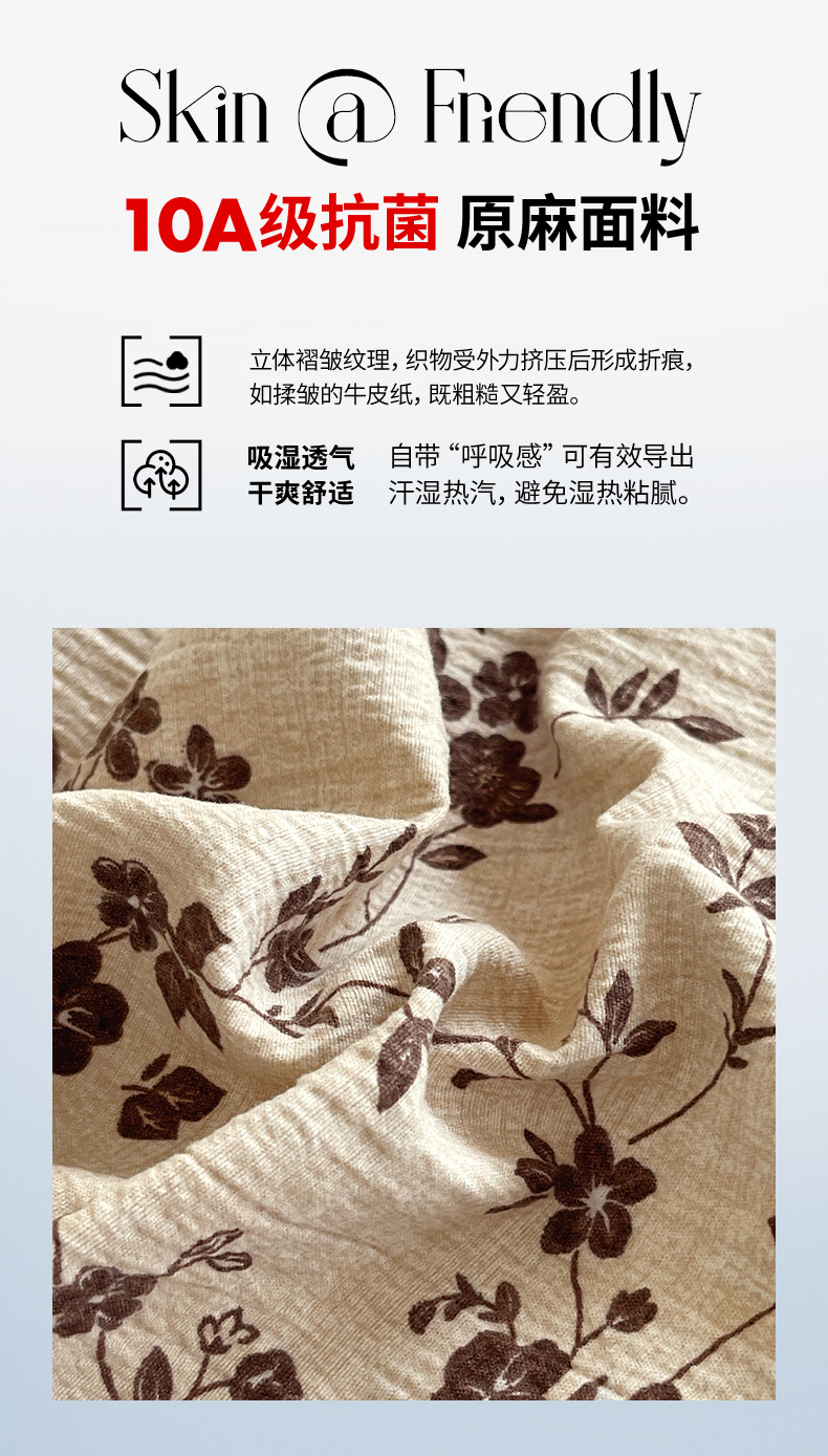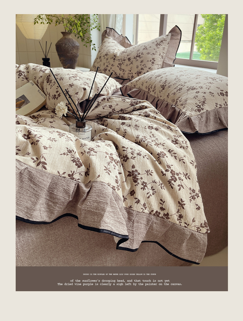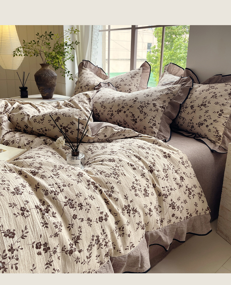 宝士康家纺 2025新品10A抗菌原麻荷叶边床单款四件套 花枝漫天