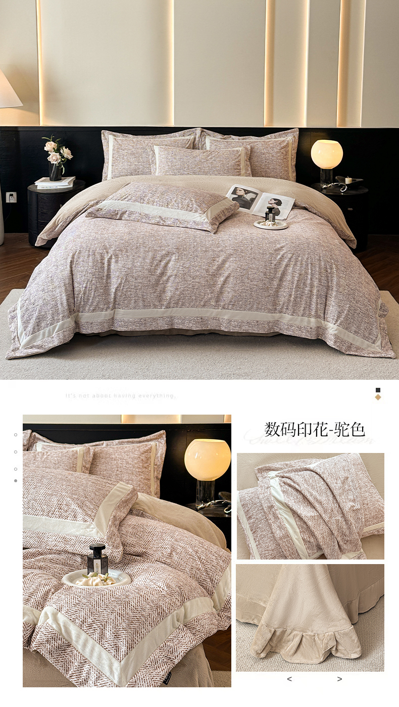 商品名称:(总)羽梦家纺 2025款数码印花全消光260克牛奶绒轻奢简约工艺款四件套