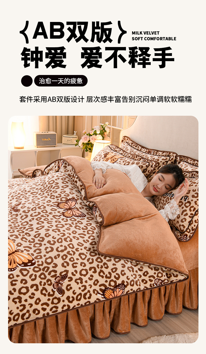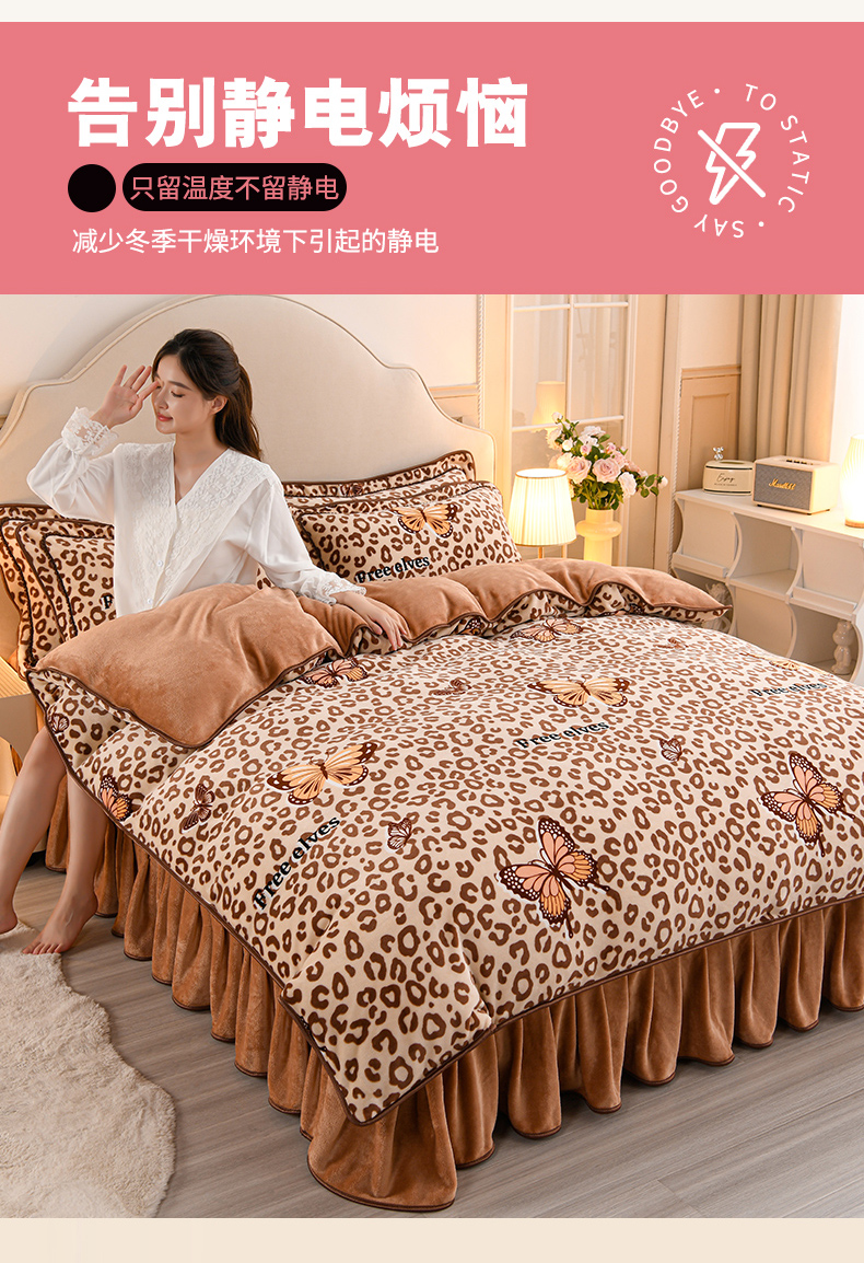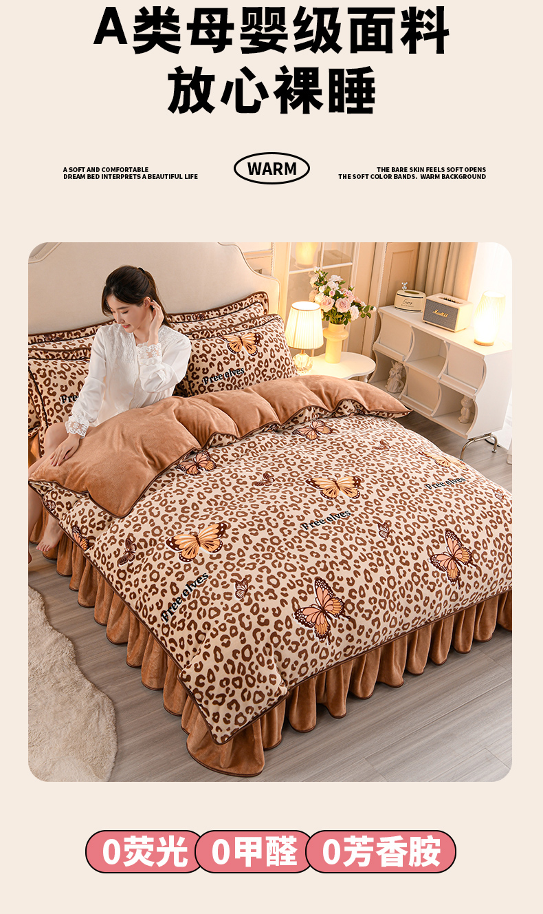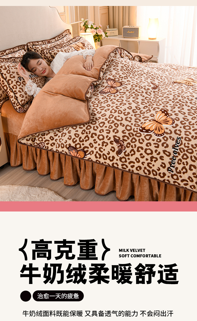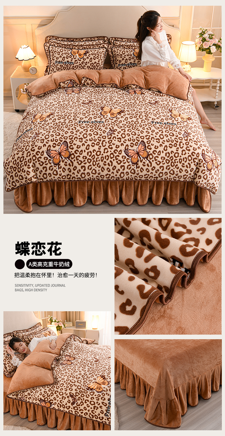 羽梦2025新款8.5斤牛奶法莱绒金貂法兰绒四件套直播爆款蝶恋花