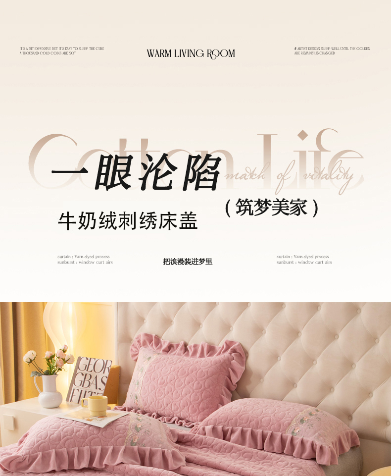 • 91家纺网 家纺一手货源 找家纺 能好家纺 2025新款牛奶绒刺绣床盖单床盖床盖单件 豆沙粉