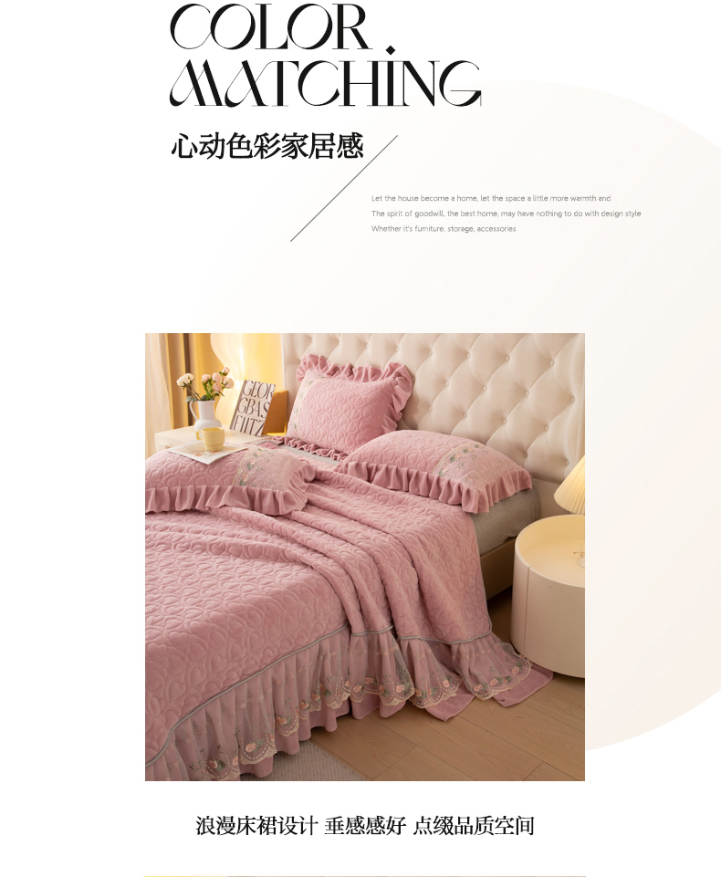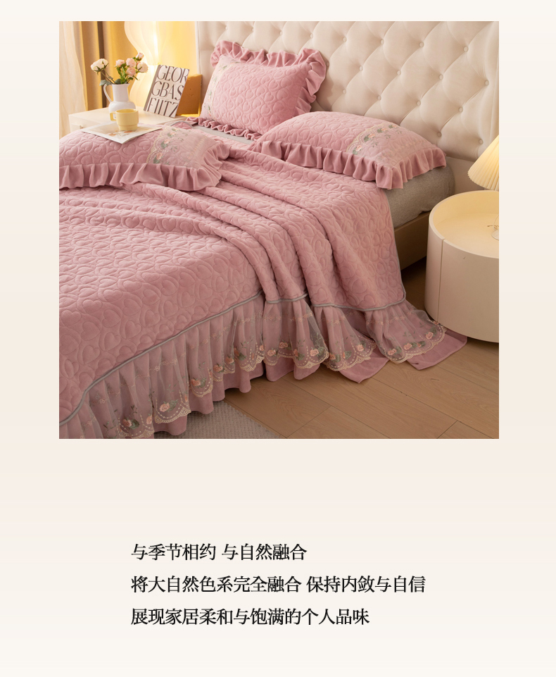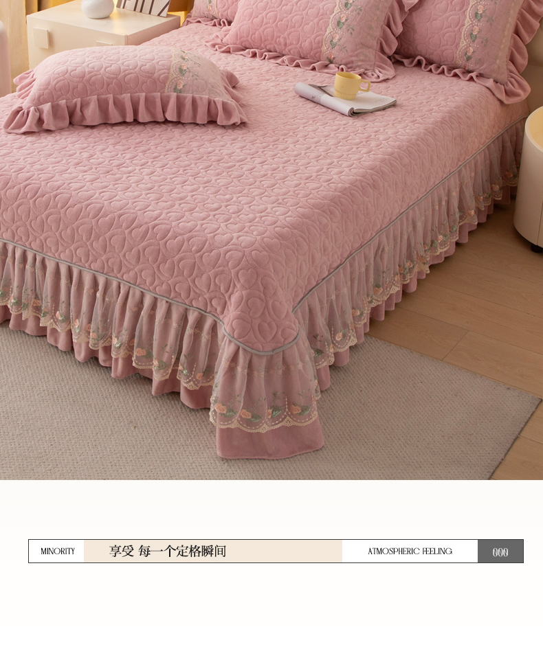 (总)能好家纺 2025新款蕾丝工艺水晶绒夹棉床裙,宝石兰,藏青,豆沙,粉玉,灰,酒红,墨绿,月光蓝