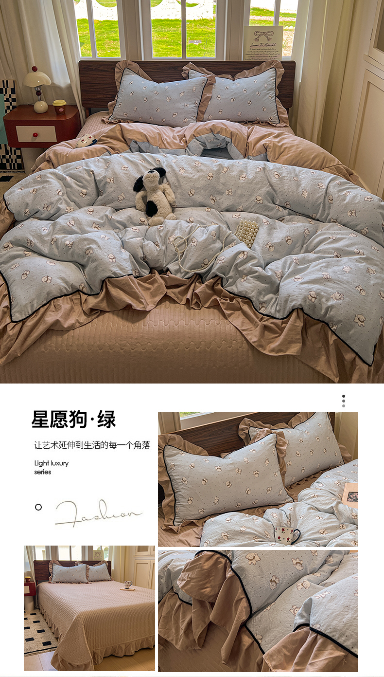 (总)美梦家纺 2026春夏新款云感皱皱纱床盖四件套,玫瑰园,芭比兔,波点咖,椿庭序,见花则喜,蜡笔画,葡萄多多,俏皮狗,苏槿,星眠云野,枝语花繁,竹歆花语