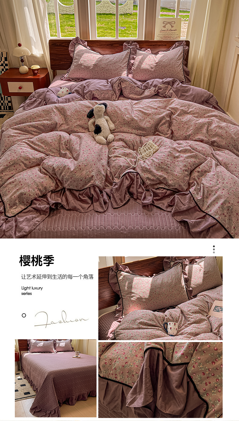 (总)美梦家纺 2025新款牛奶绒花边夹棉床盖四件套,爱心-灰,蝴蝶结-紫,蝶舞,蕾丝花-蓝,豆蔻,咖波点,蝴蝶结-灰,灵动草莓-米,秋叶-咖,甜美女孩,乌梅紫酱,星辰蝶语-紫,雨后花园,紫色物语,冰淇淋