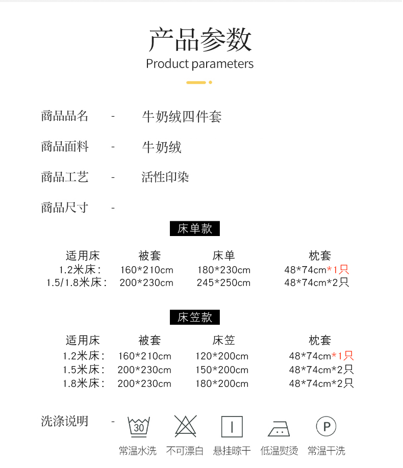 【床笠款】1.8四件套-被套200x230 | ¥120.00 |