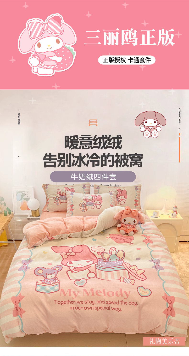 当前位置: 91家纺网 > 商品网购 > 床品套件 > 四件套 > 牛奶绒四件套 > 金爱家 2025新款正版三丽鸥授权大版卡通平网数码印花加厚高克重牛奶绒系列四件套-第二批 绒R礼物美乐蒂