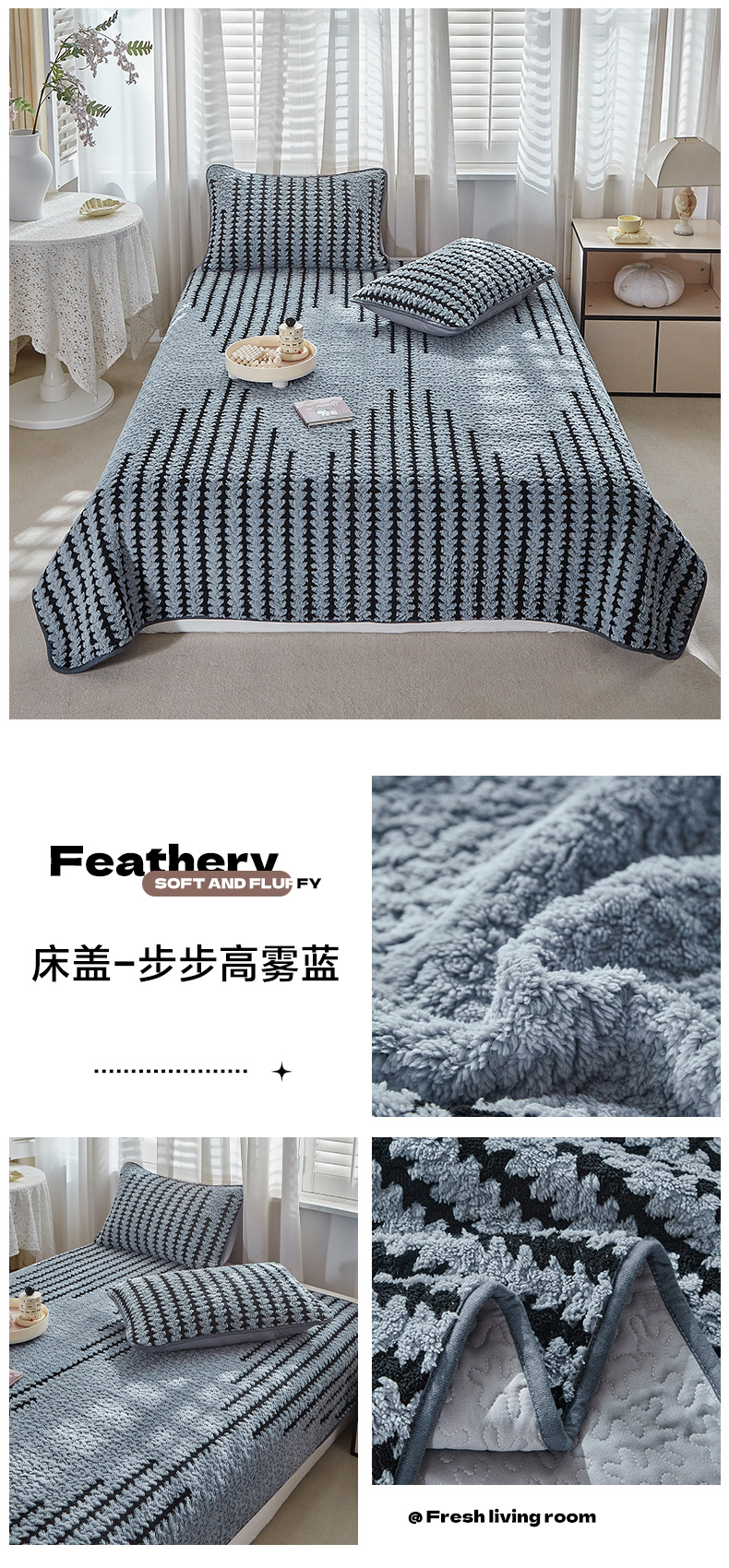 • 91家纺网 家纺一手货源 找家纺 温宁家纺 2025新款步步高床盖三件套 床盖-步步高雾蓝