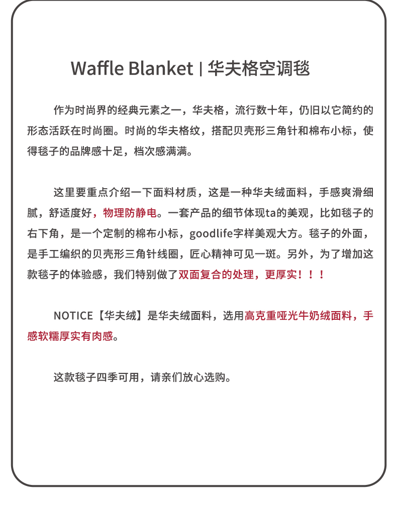 商品名称:(总)华夫格空调毯 办公室午睡披肩毯双层